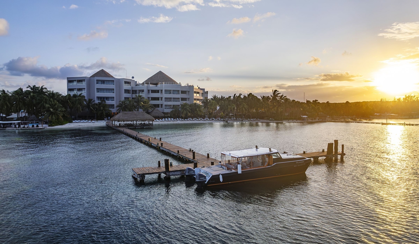 Located on Isla Mujeres, just 20 minutes by boat from Cancún, the hotel sits in one of the island’s most peaceful areas
