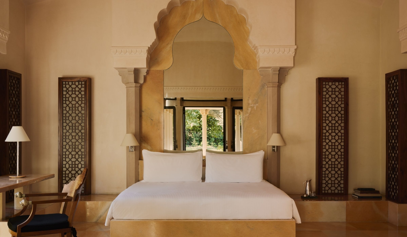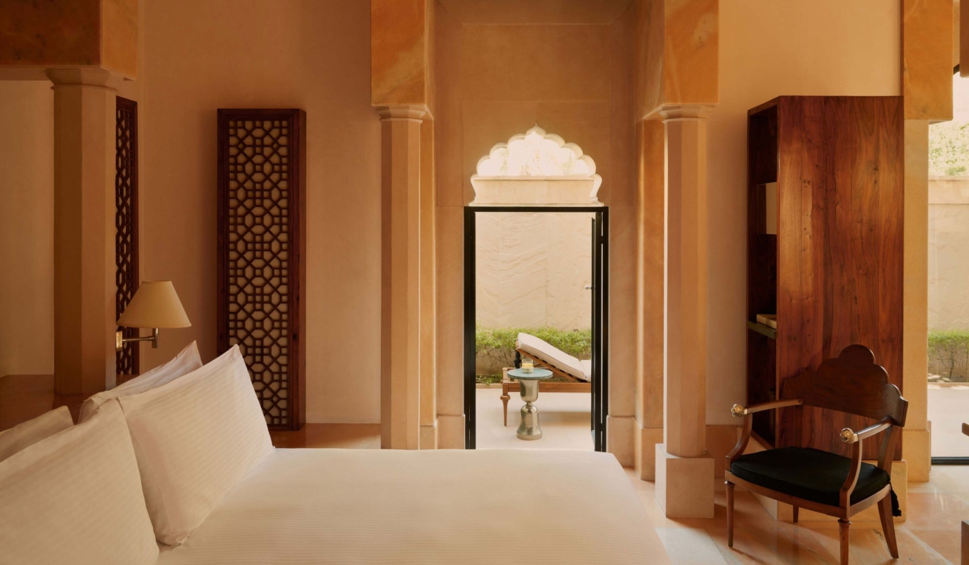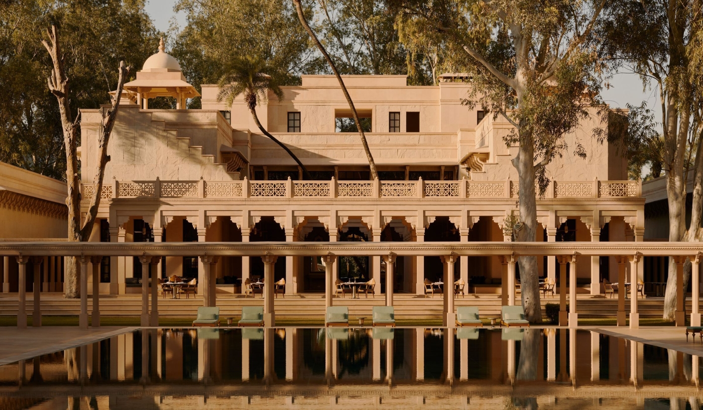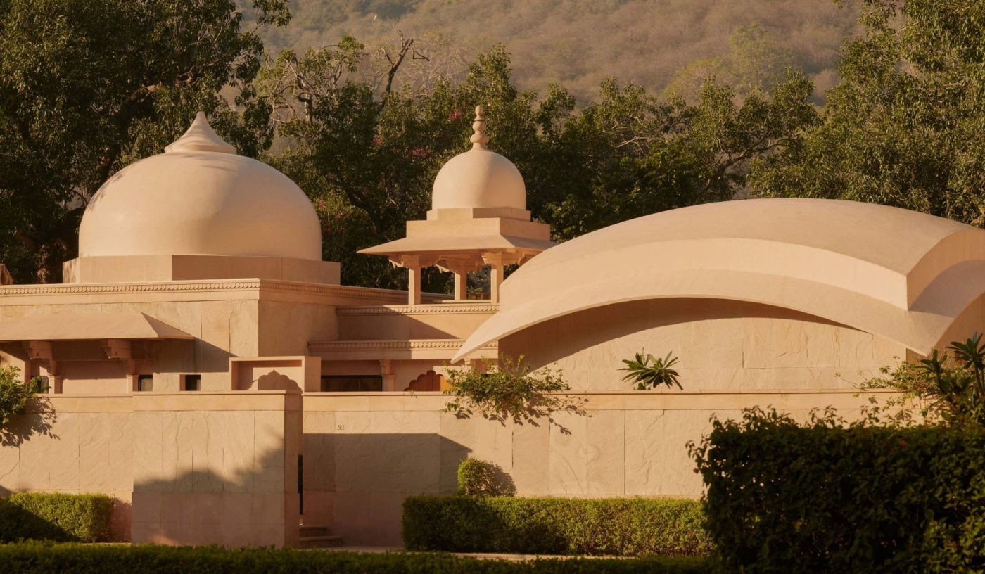 Tucked among the Aravalli Hills, Amanbagh is a lush, rose-hued oasis built on the grounds of a former Mughal hunting lodge, where domed pavilions, serene courtyards, Ayurvedic rituals and immersive cultural journeys offer a deeply restorative escape into rural Rajasthan.