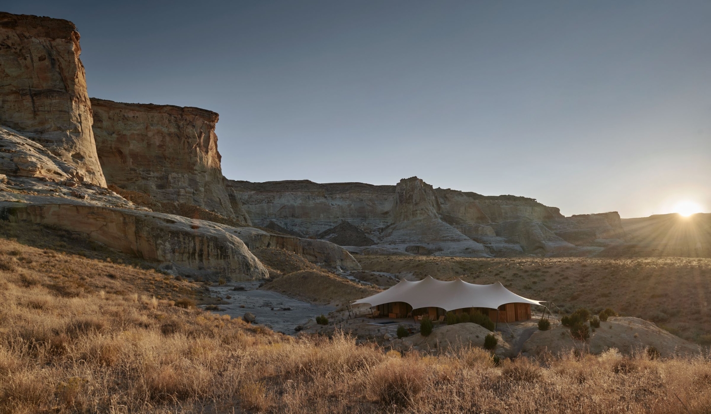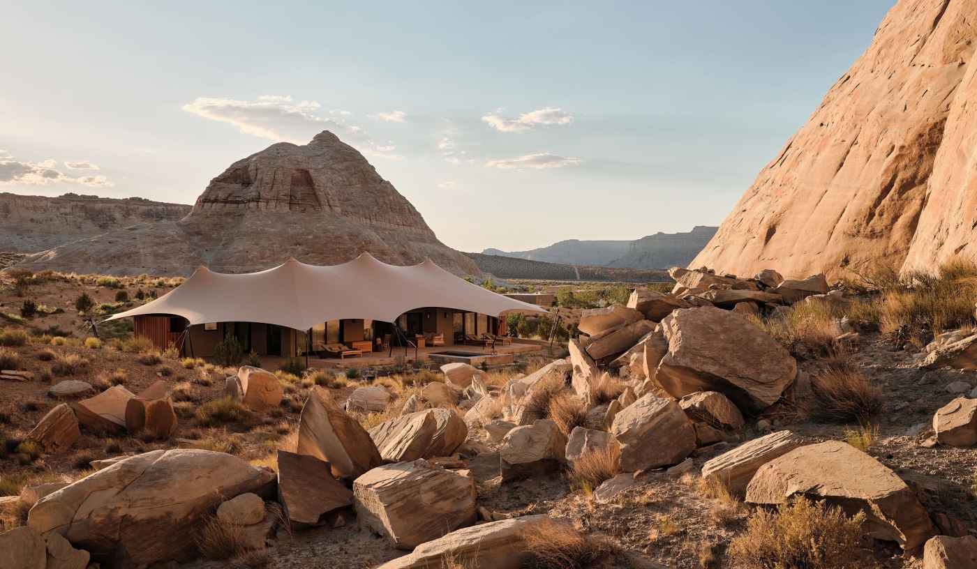 Set in the otherworldly landscape of Utah’s southern deserts, a stone’s throw from Lake Powell and the Arizona border, this impressive feat of architectural daring is one of the most exclusive hotels in America.