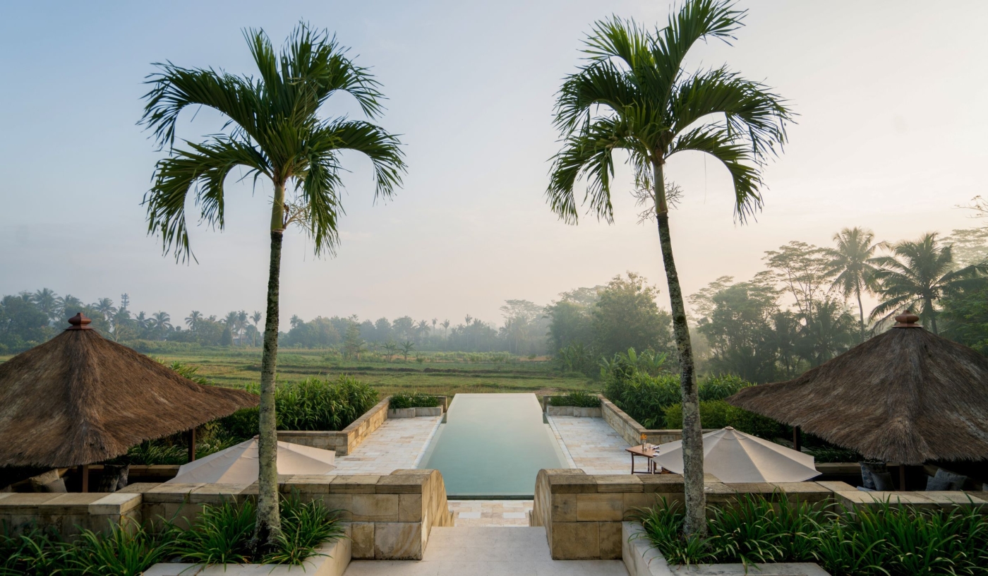 Relax by the 40 metre pool while gazing over rice paddies in a serene, luxurious setting