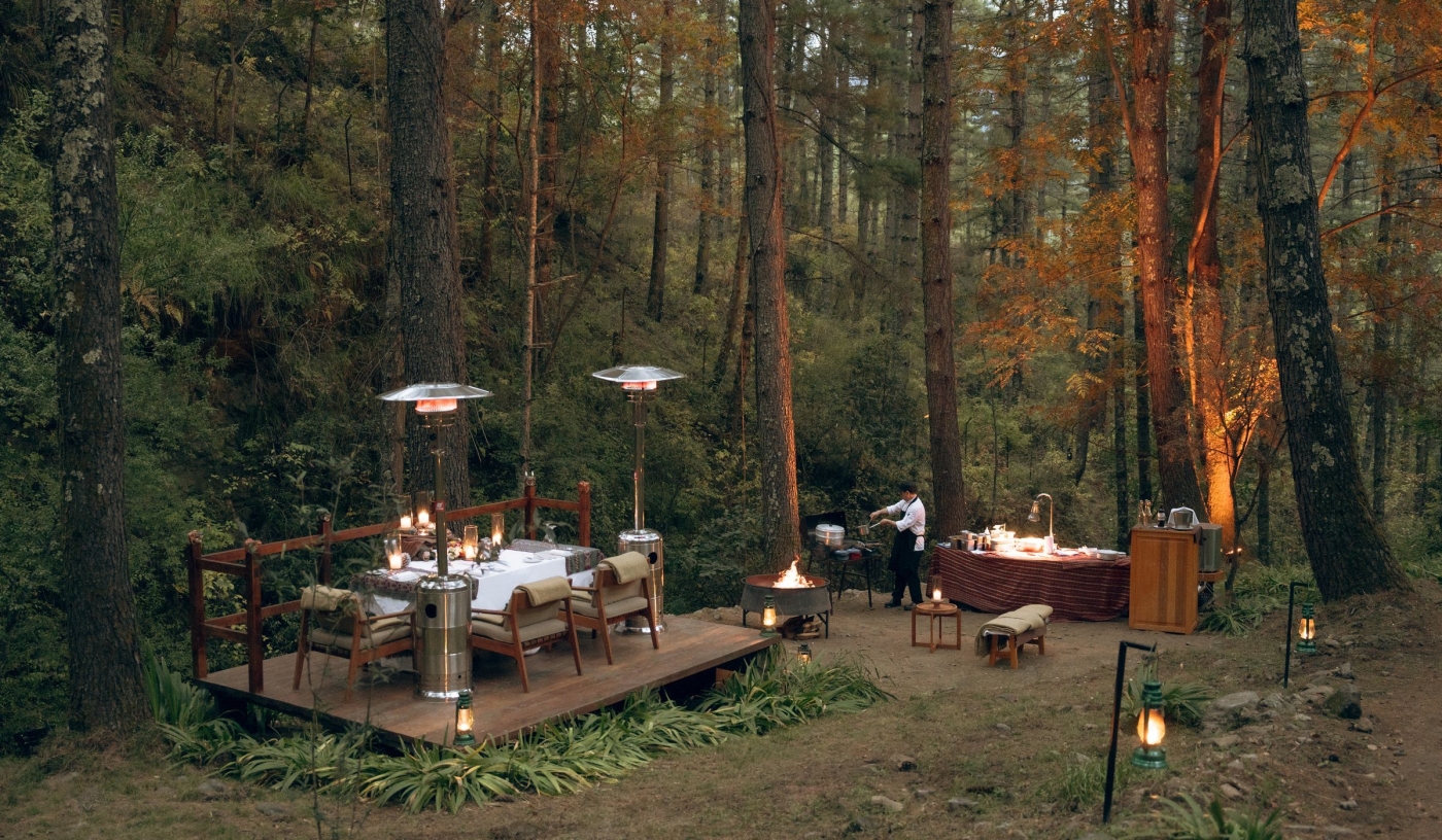 Share quiet moments over dinner on the terrace, with forests and a rushing stream as backdrop.