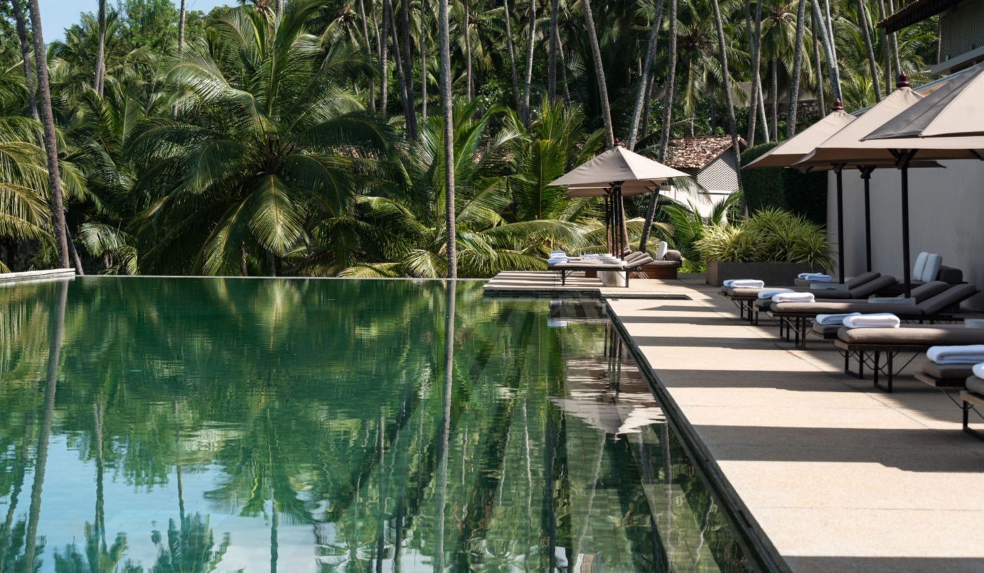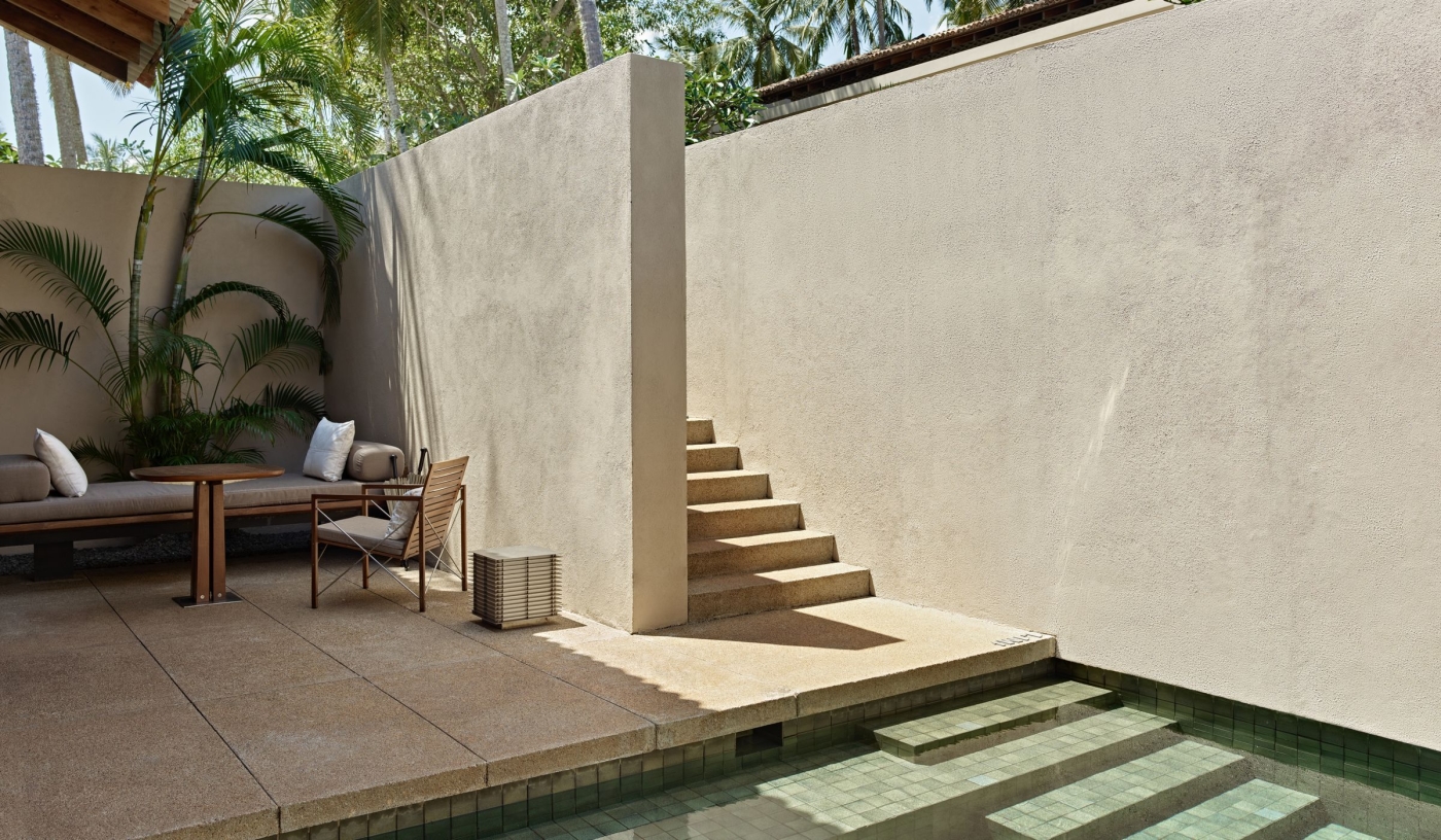 Just 27 hillside suites, each with plunge pool and terrace, overlook coconut groves and a sweep of golden beach.