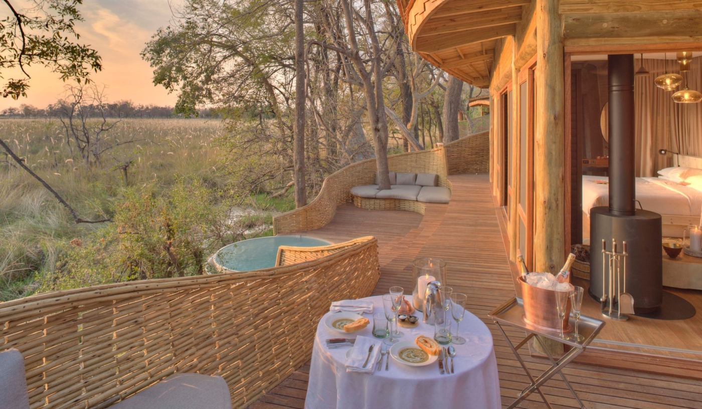 A luxurious lodge located on a private concession in the Okavango Delta, adjacent to the wildlife-rich Moremi Game Reserve.