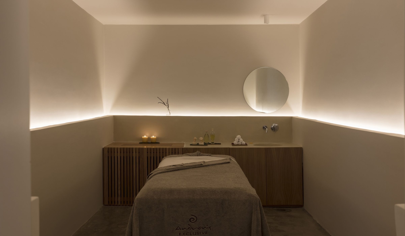 Dive into the spectacular infinity pool with underwater music or unwind at the ultra-luxurious Evaxia Spa.