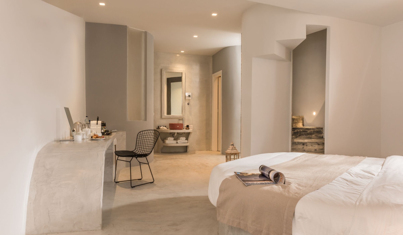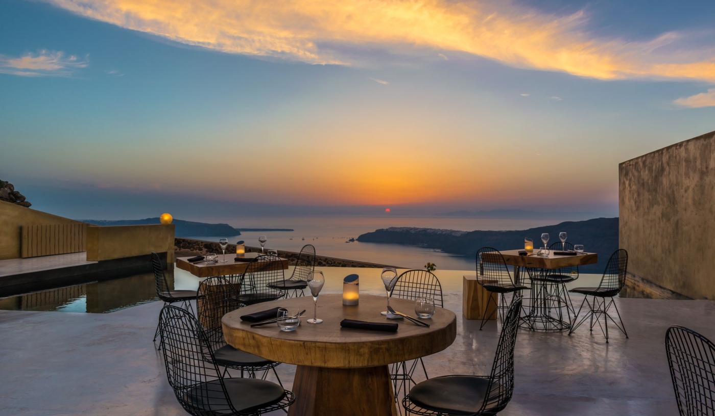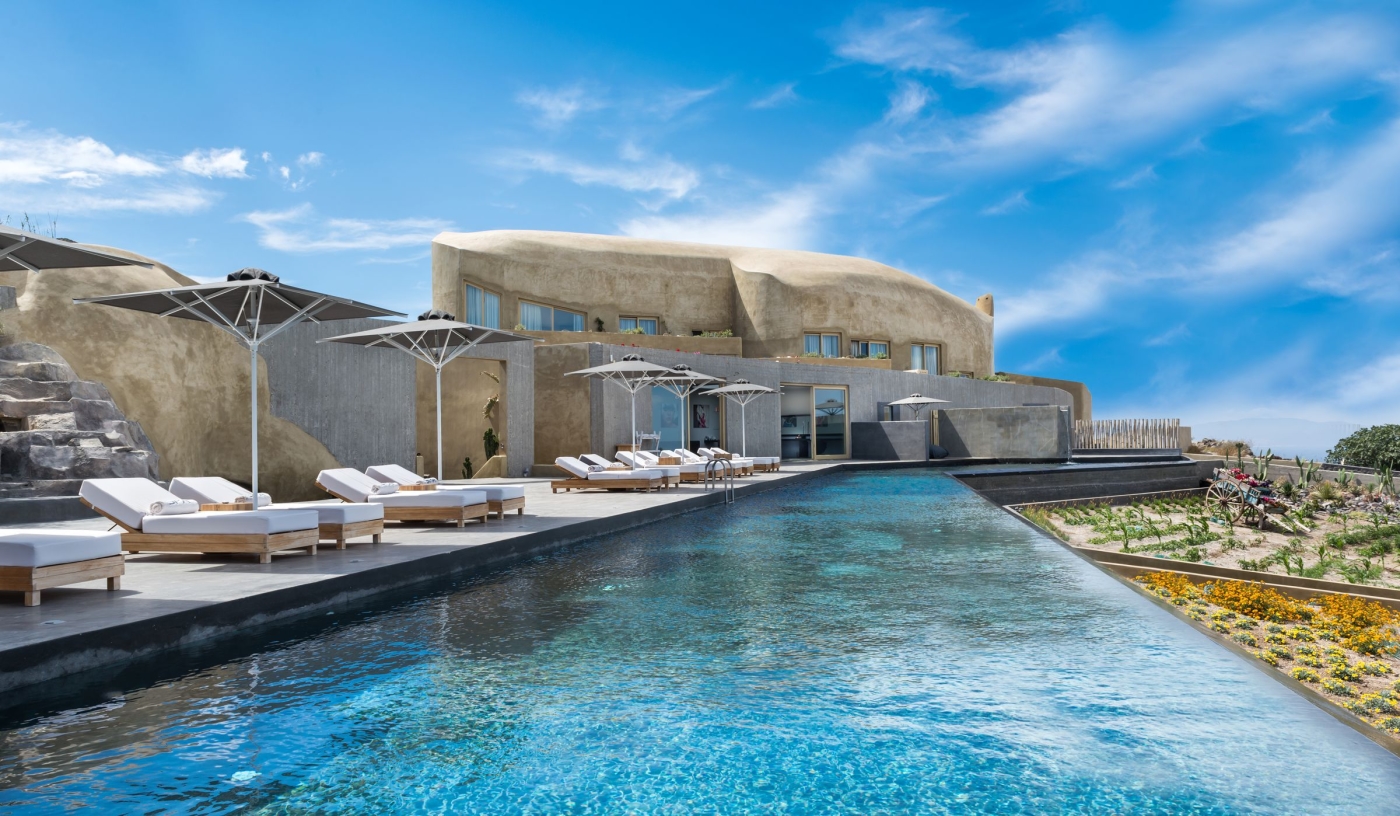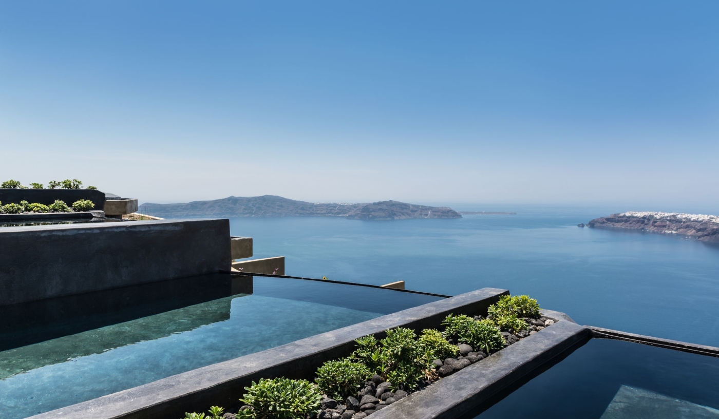 Perched atop the cliffs of Imerovigli near the highest point of Santorini’s caldera, along a scenic hiking road that connects Oia to Fira, Andronis Concept is a sophisticated wellness resort with service as polished as its smooth concrete surfaces and views as inspiring as any you’ll find in Greece.