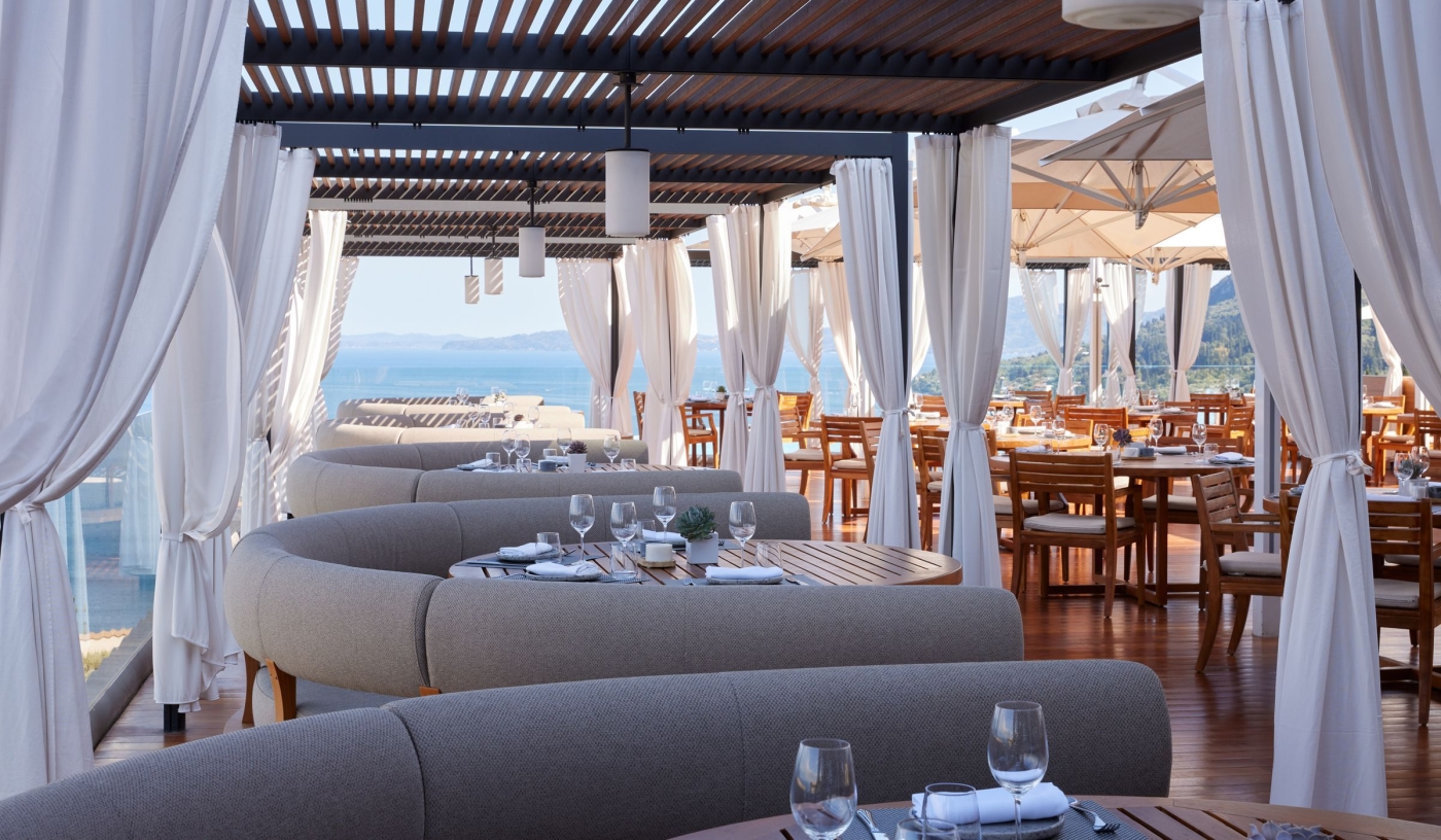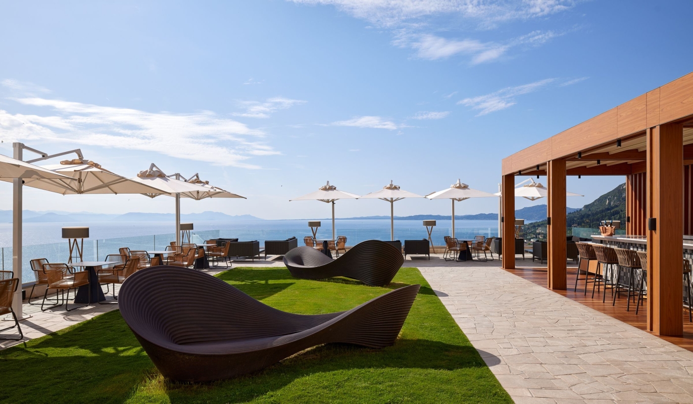 Stylish rooms, suites and villas with sweeping Ionian views and private pools set the tone for pure relaxation.