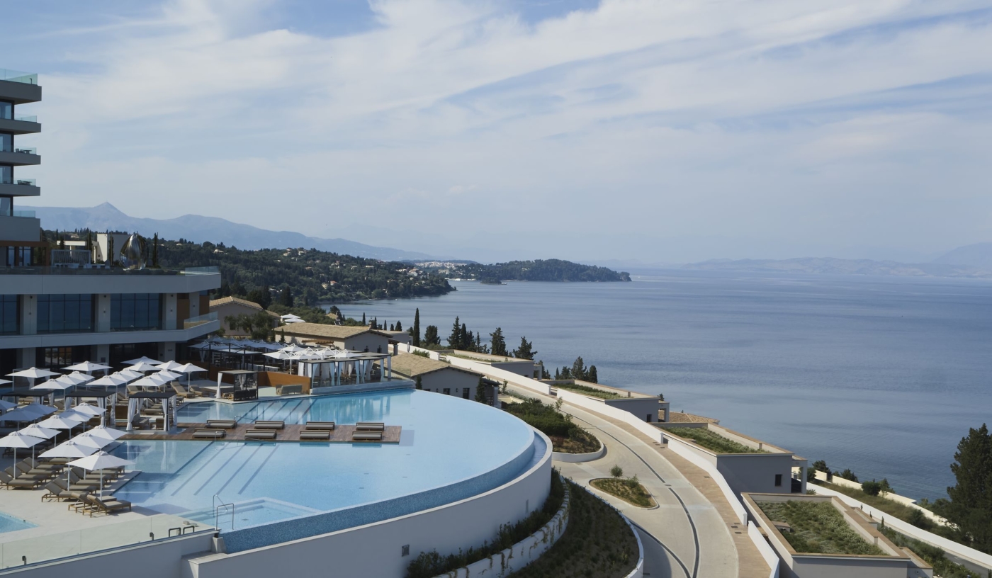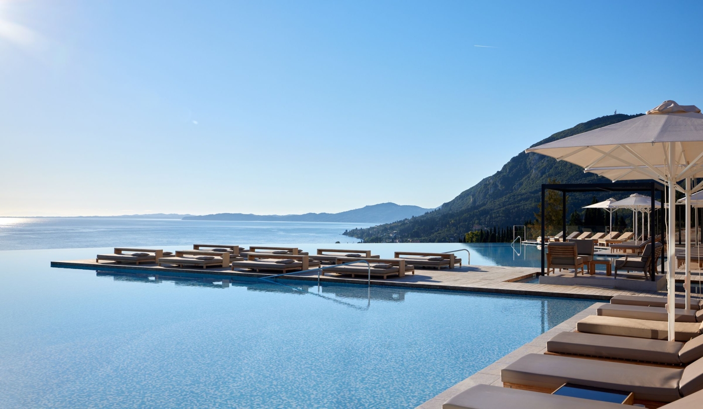 Dive into Corfu’s largest infinity pool or kick back at the chic beach club with cocktails and sunshine.