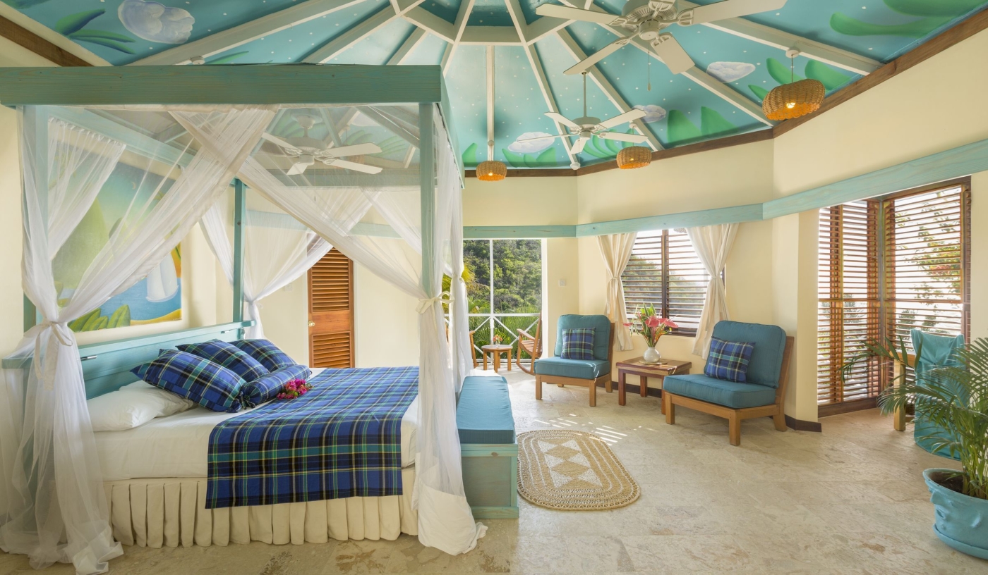 The sister property to Jade Mountain, this 600-acre beachfront resort offers rooms either scattered about the lush hillside or set in tropical gardens at beach level