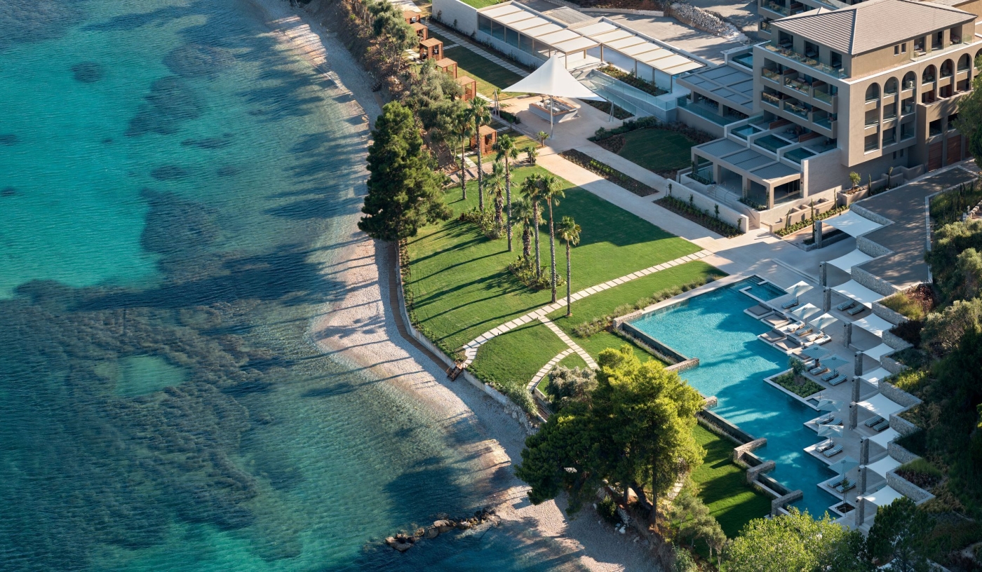 Discover the romance and sophistication of the luxurious Domes Miramare, a coastal hideaway that was once the summer playground of the Onassis family and is still a firm favourite among the rich and famous. Reserved exclusively for adults, the hotel is a paradigm of chic coastal living, with guestrooms overlooking the ocean, bars serving Corfiot cocktails, and three fabulous restaurants.