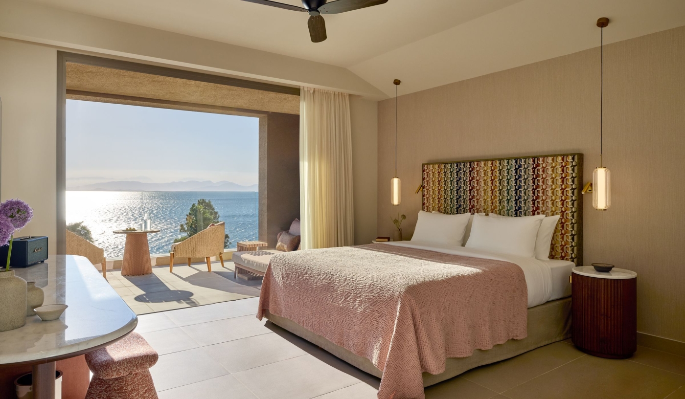 Cradled in a small bay with mountains behind it and the Ionian Sea glittering out in front, Avali, Mar-Bella Collection is a premium, all-inclusive shorefront resort with a choice of dining options, an outdoor spa and a gorgeous freshwater infinity pool.
