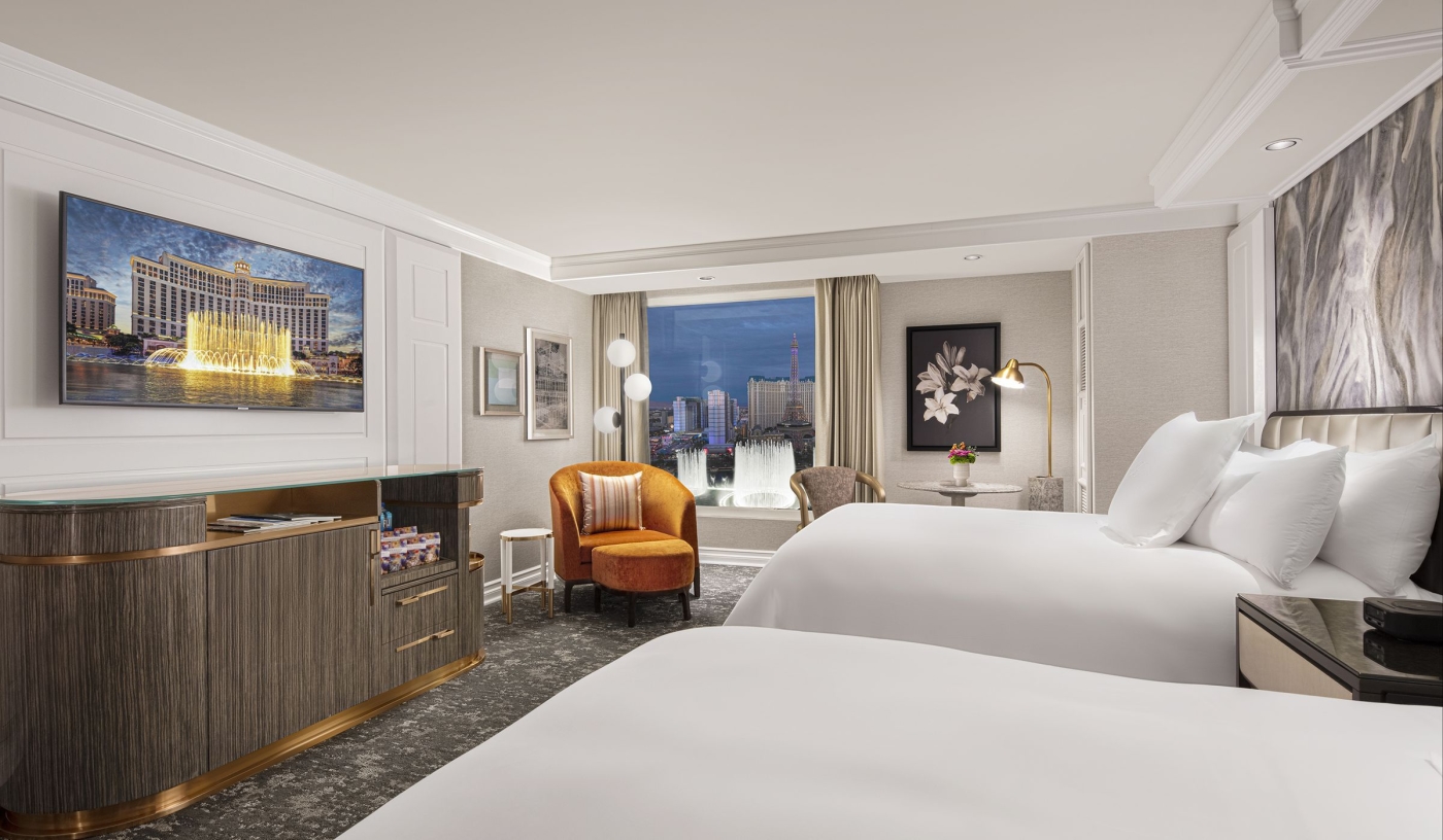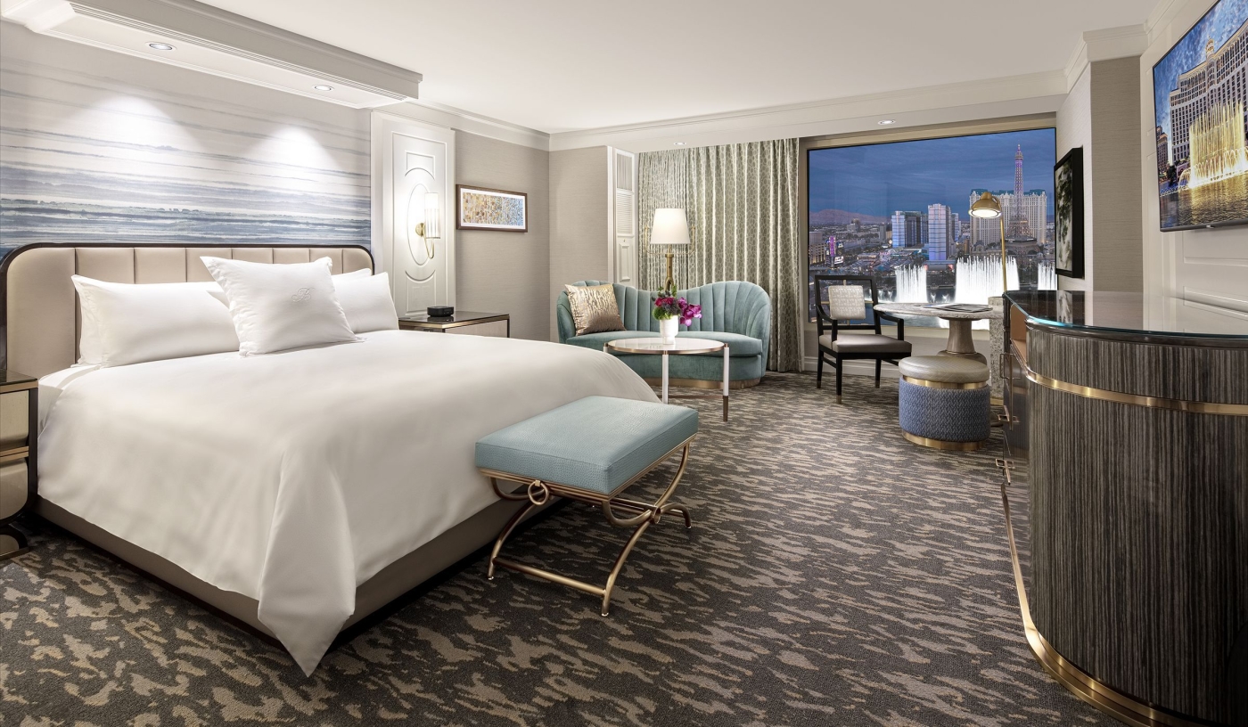 Rooms and suites have been recently refreshed, providing elegant surroundings with views that often take in the fountains below.