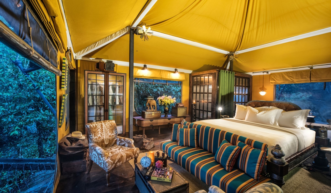 Stay in individually designed Bill Bensley tents, each with its own mix of safari style, vintage travel elements and playful details