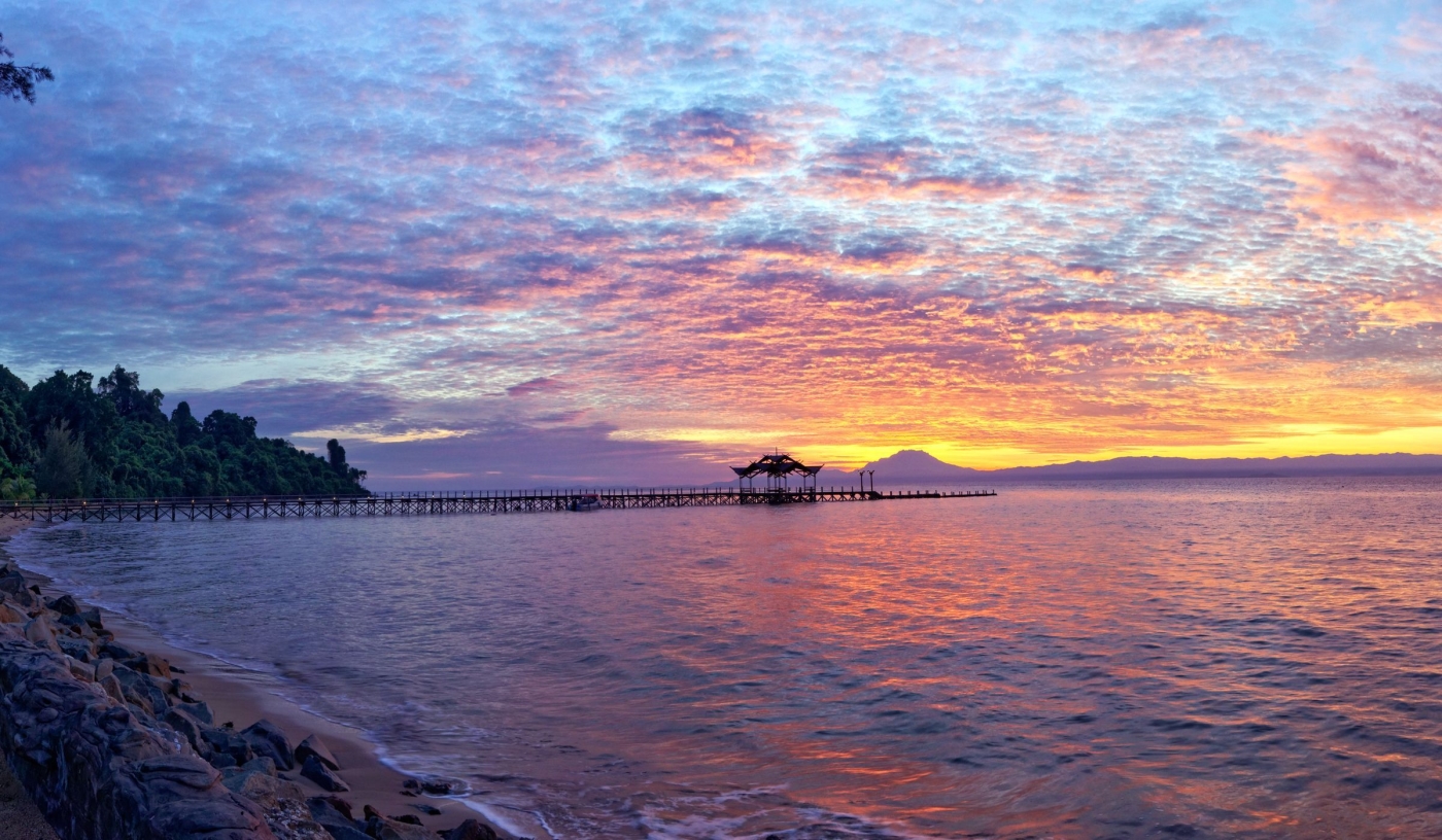 Bungaraya Island Resort sits on the northern edge of Gaya Island within the Tunku Abdul Rahman Marine Park, just off the coast of Kota Kinabalu. Accessible only by boat, it is surrounded by protected rainforest and fronts a quiet, curved beach overlooking the South China Sea, where the resort focuses its conservation efforts both above and below the waterline.