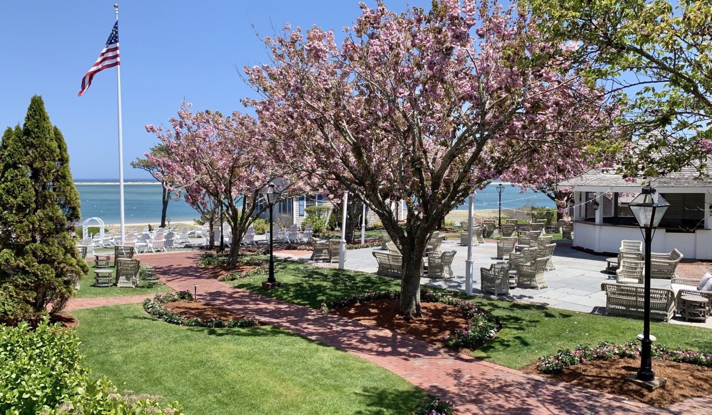Historic Cape Cod retreat with elegant rooms in the 1914 main house and classic New England cottages stretched along a private sandy beach.
