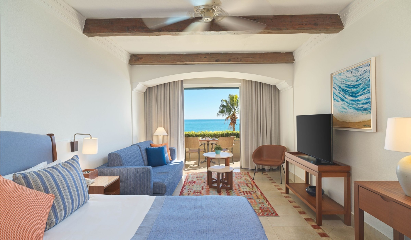 Stay in style in elegant suites with balconies and views over gardens, pools or the sparkling Med.