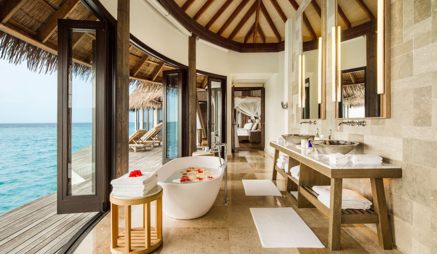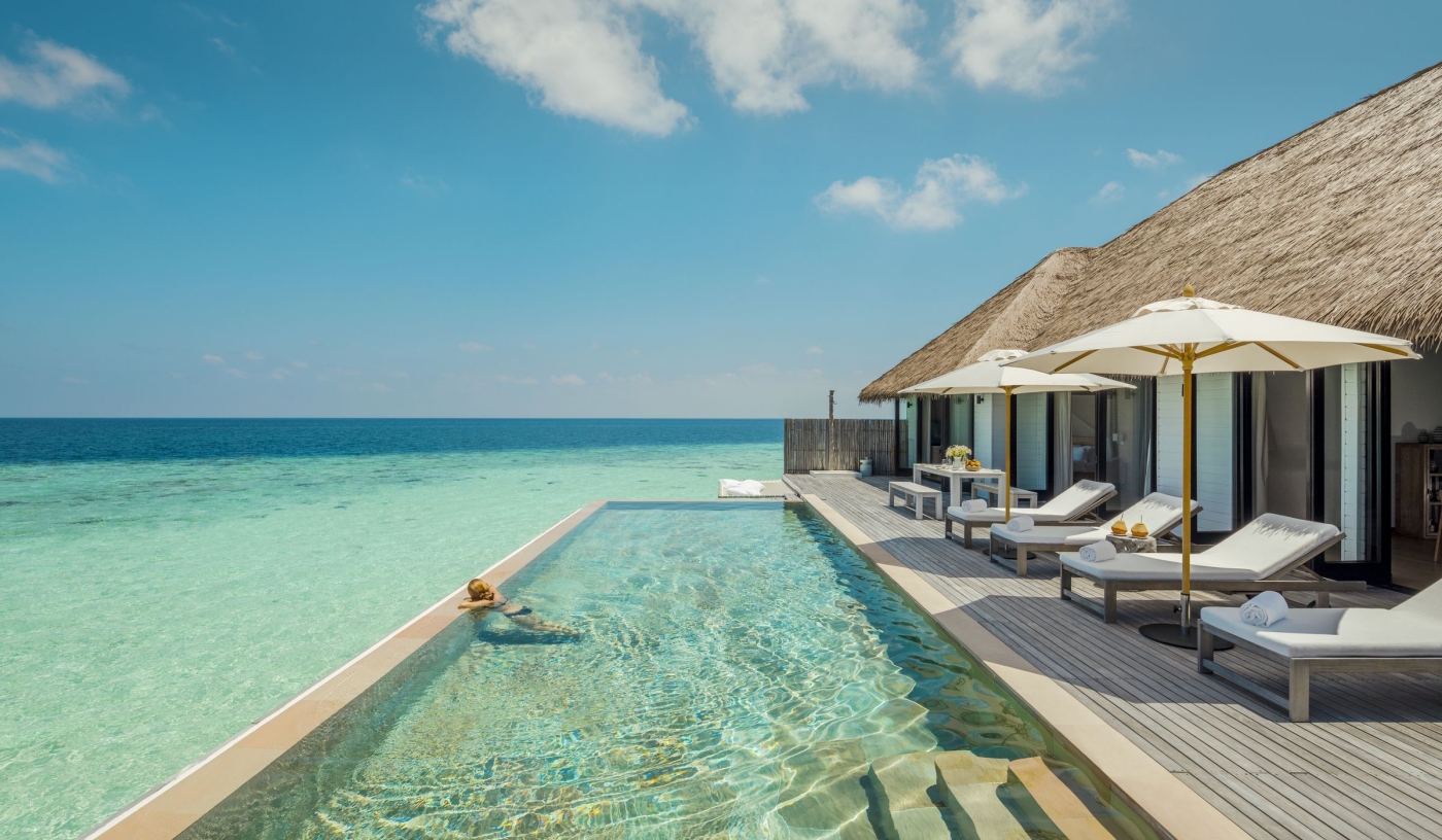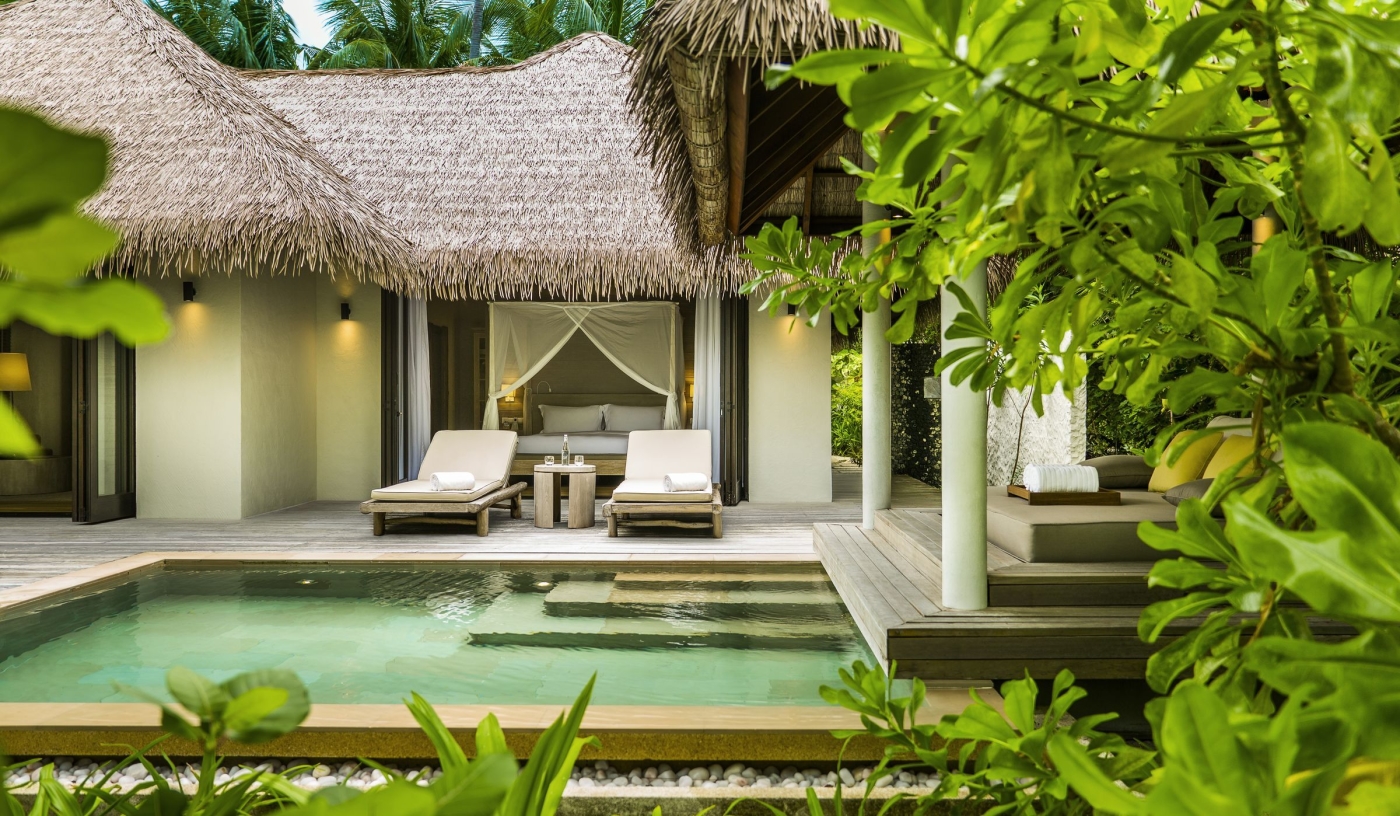 Some of the 65 suites and villas sit overwater with private swim-up terraces, while others are secluded amid tropical greenery with private pools and direct beach access
