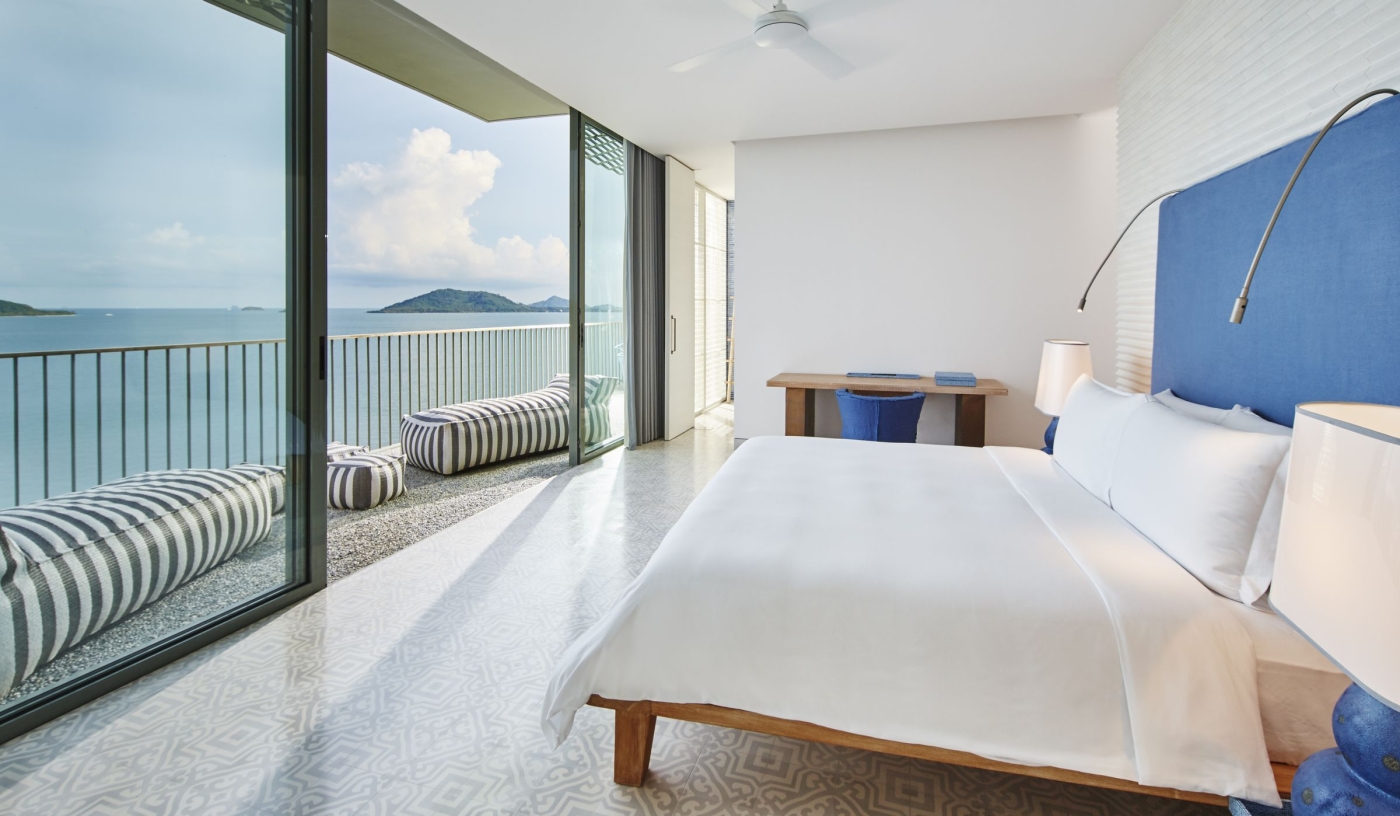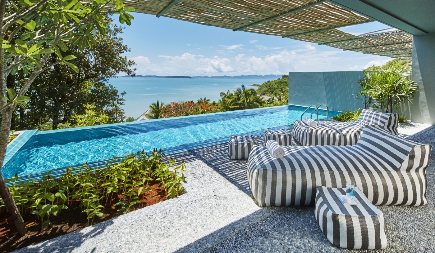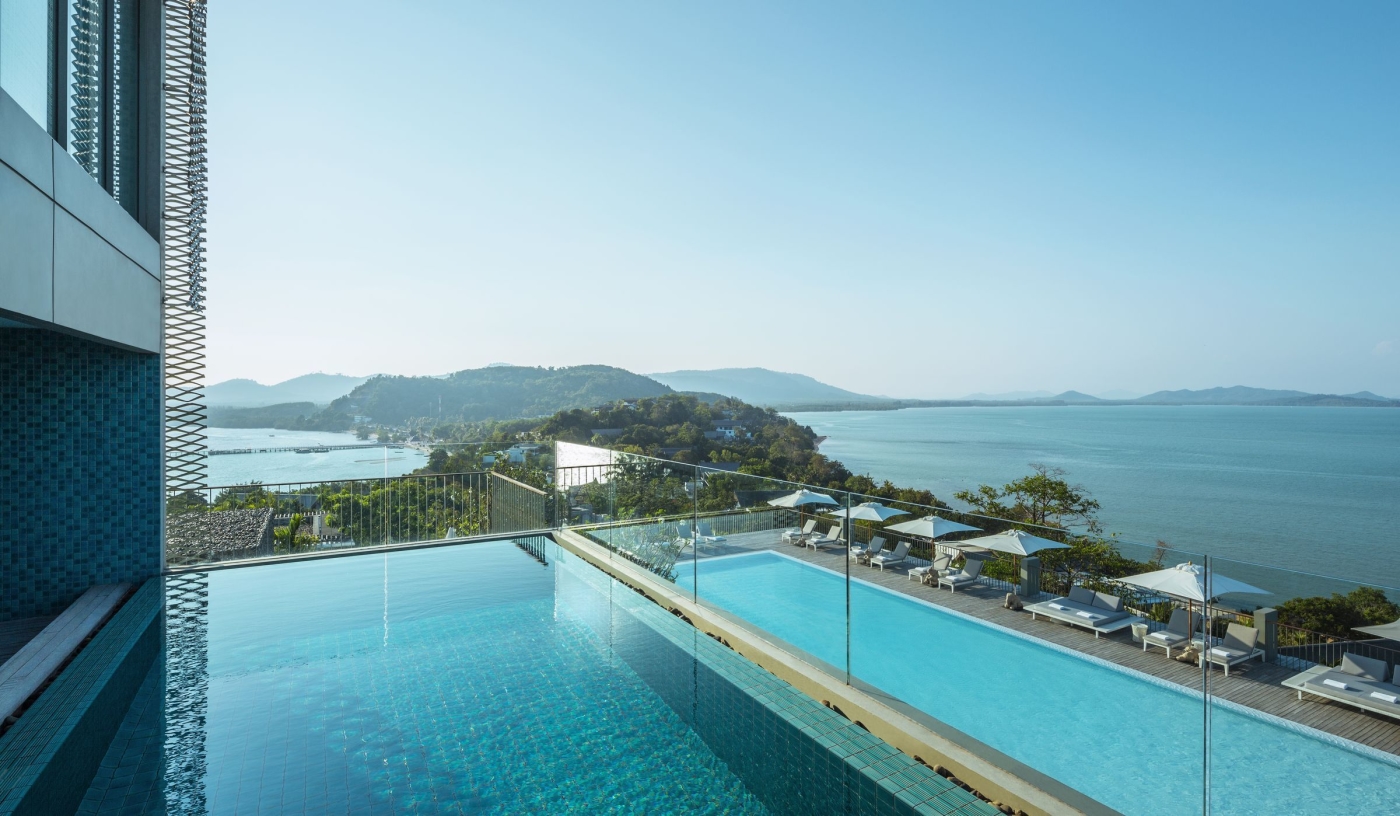 Set at the tip of Cape Yamu on Phuket’s east coast, the resort looks across the limestone islets of Phang Nga Bay.