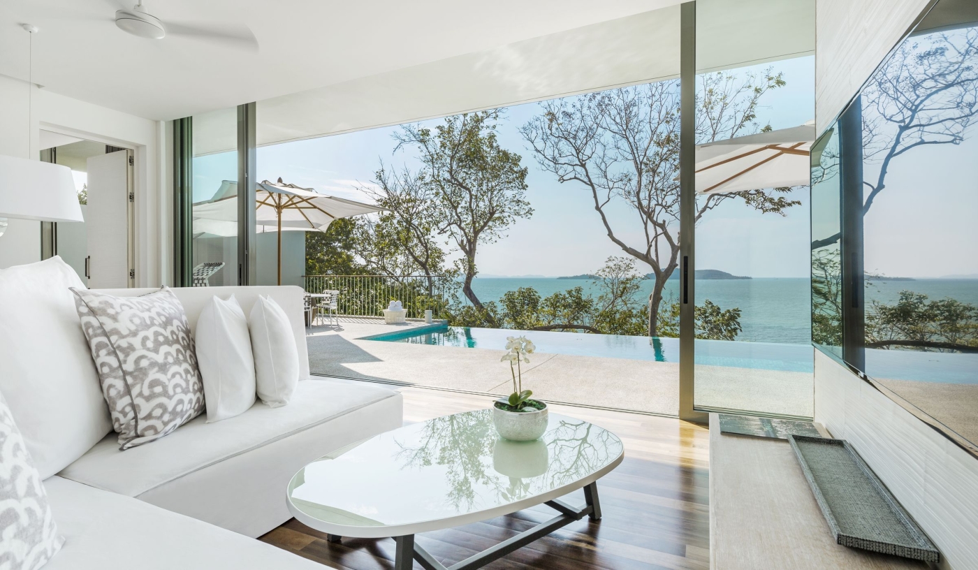 Suites and villas have indoor and outdoor living areas, designed to take advantage of the sea air and views.