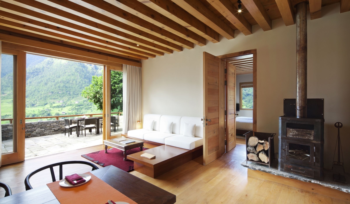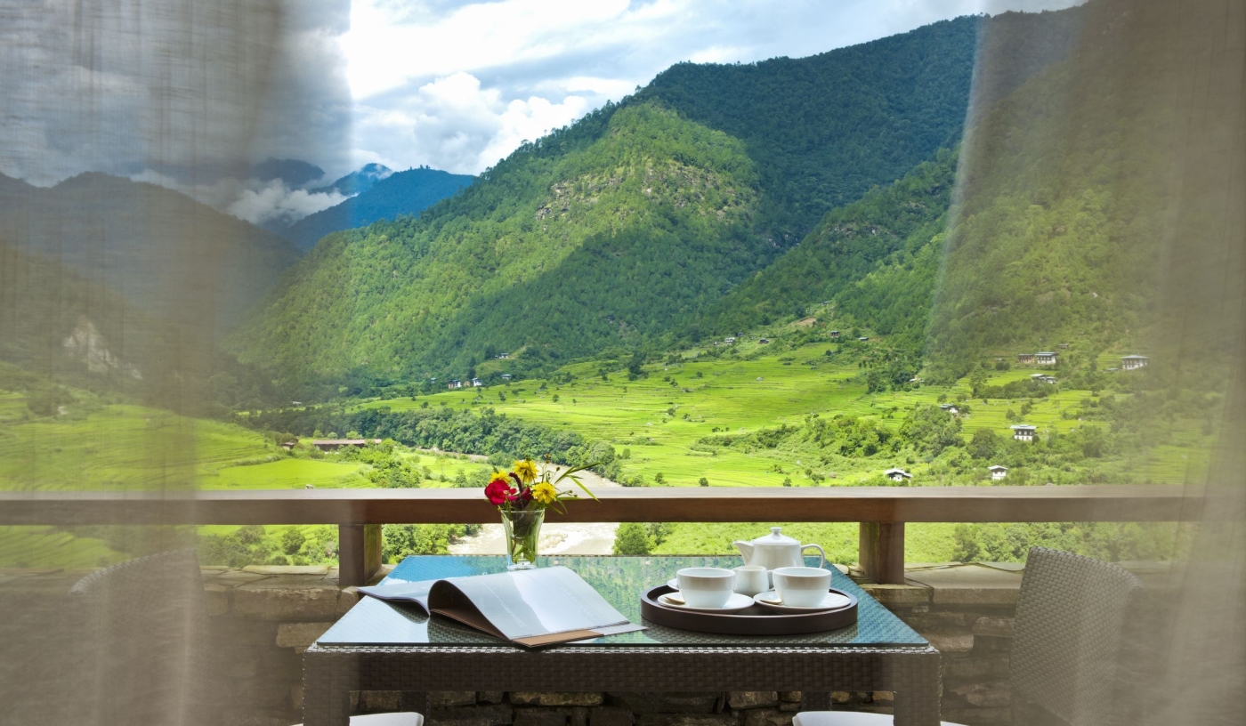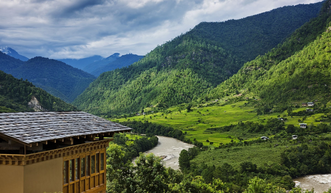 Perched above rice paddies and rivers, this intimate lodge offers front-row views of the serene, untouched Punakha Valley.