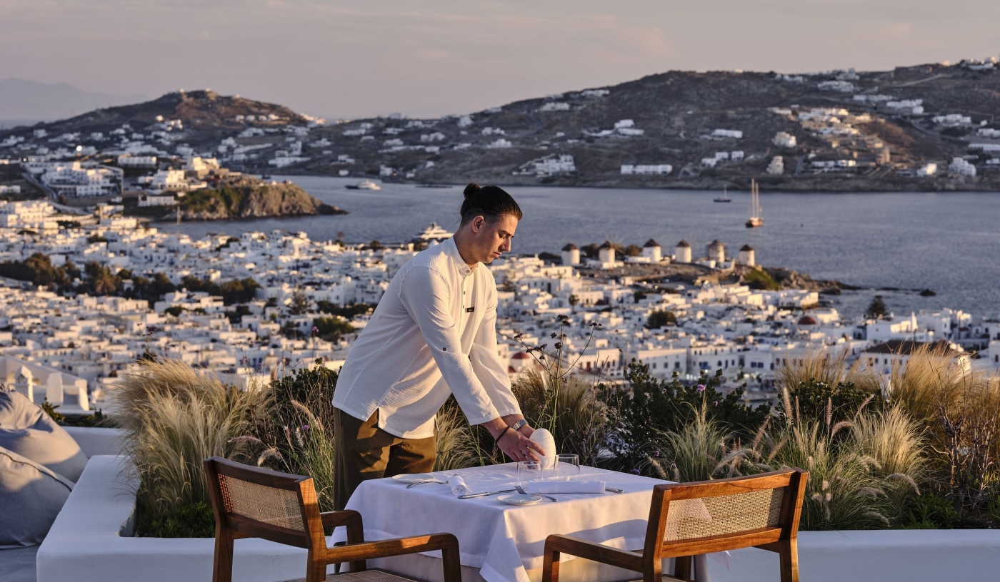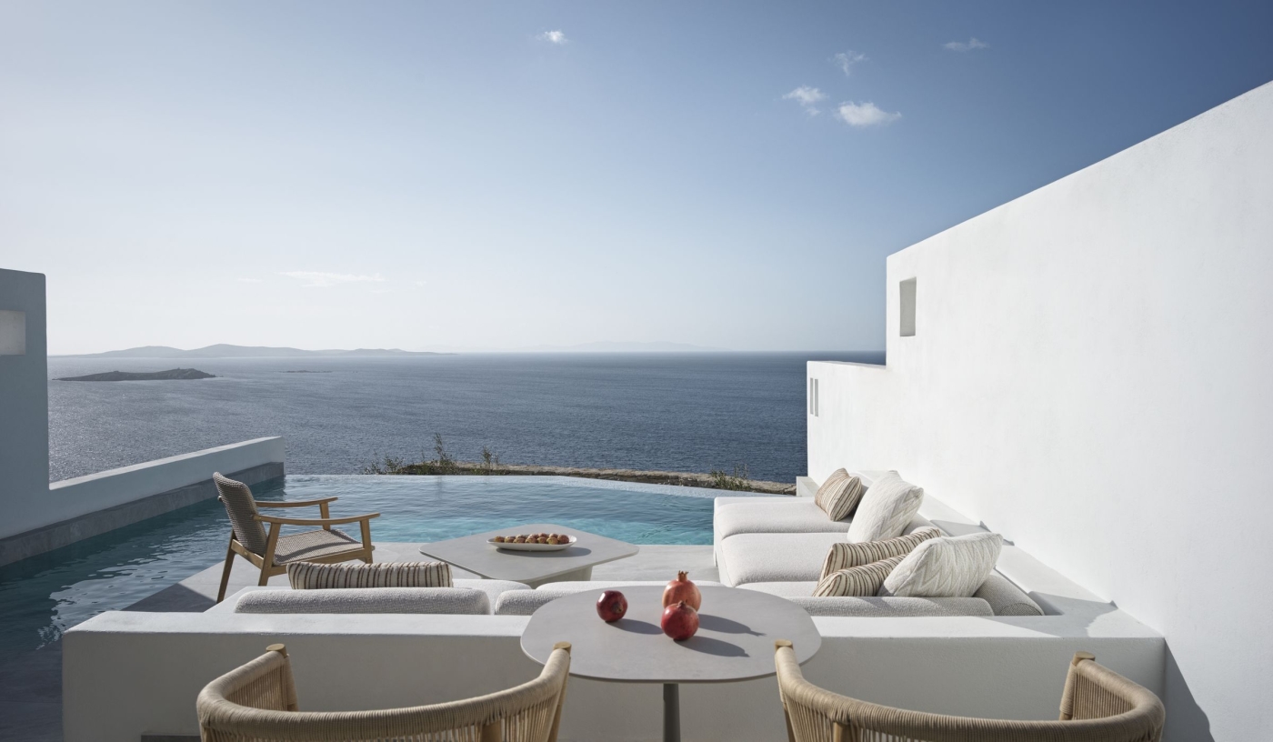 Perched in a panoramic position above iconic Mykonos Town, the newest addition to the Myconian Collection fuses authentic Greek charm with seamless service, fine dining and sleek accommodation.