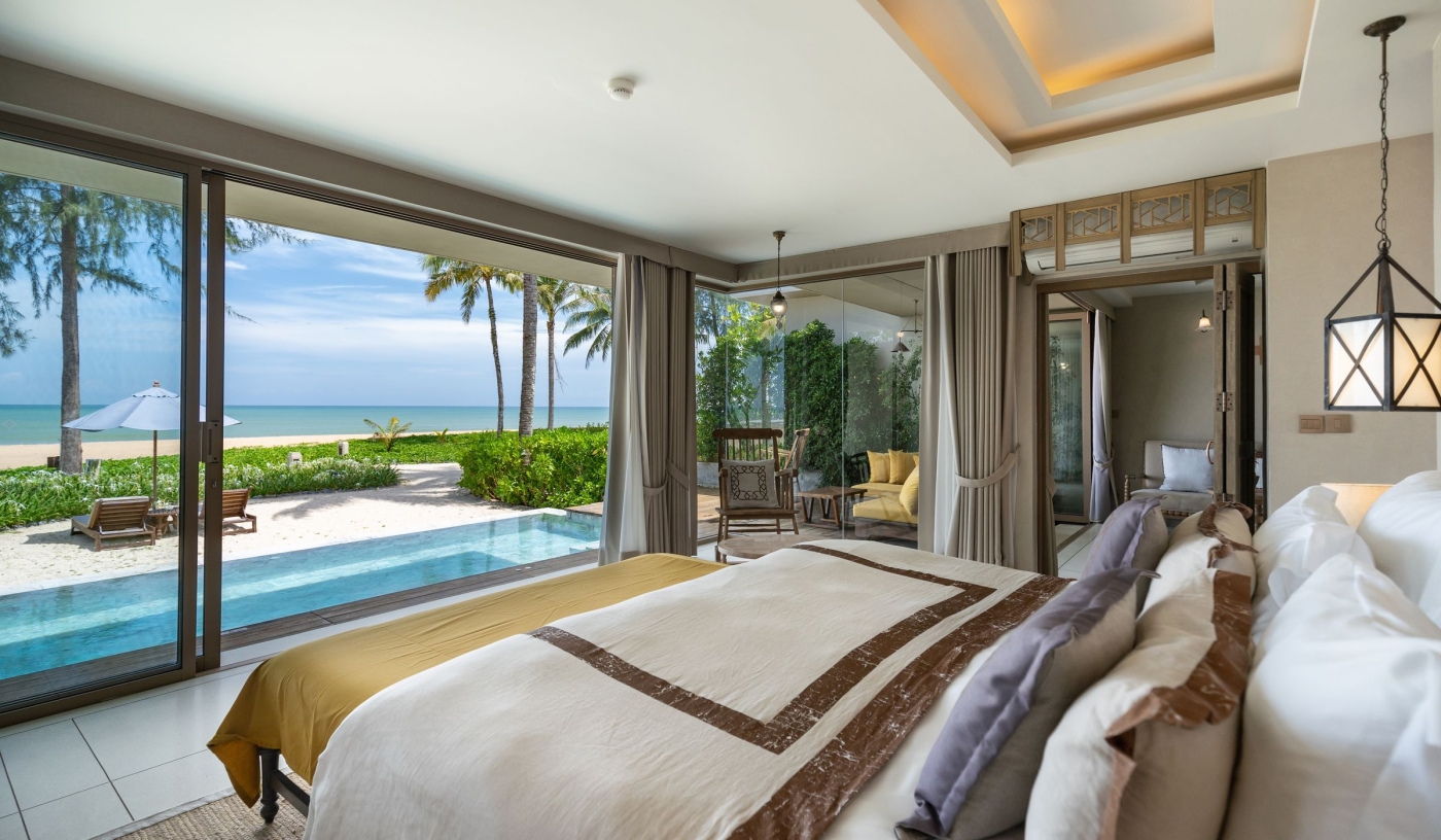 Indulge in a beachfront villa just steps from the ocean with a private terrace and pool