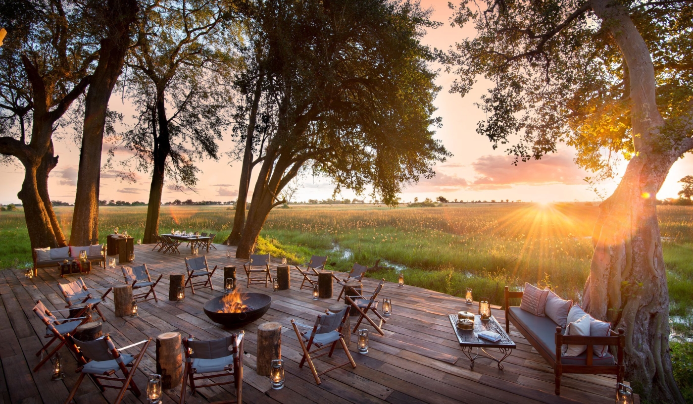 A luxurious lodge located on a private concession in the Okavango Delta, adjacent to the wildlife-rich Moremi Game Reserve.