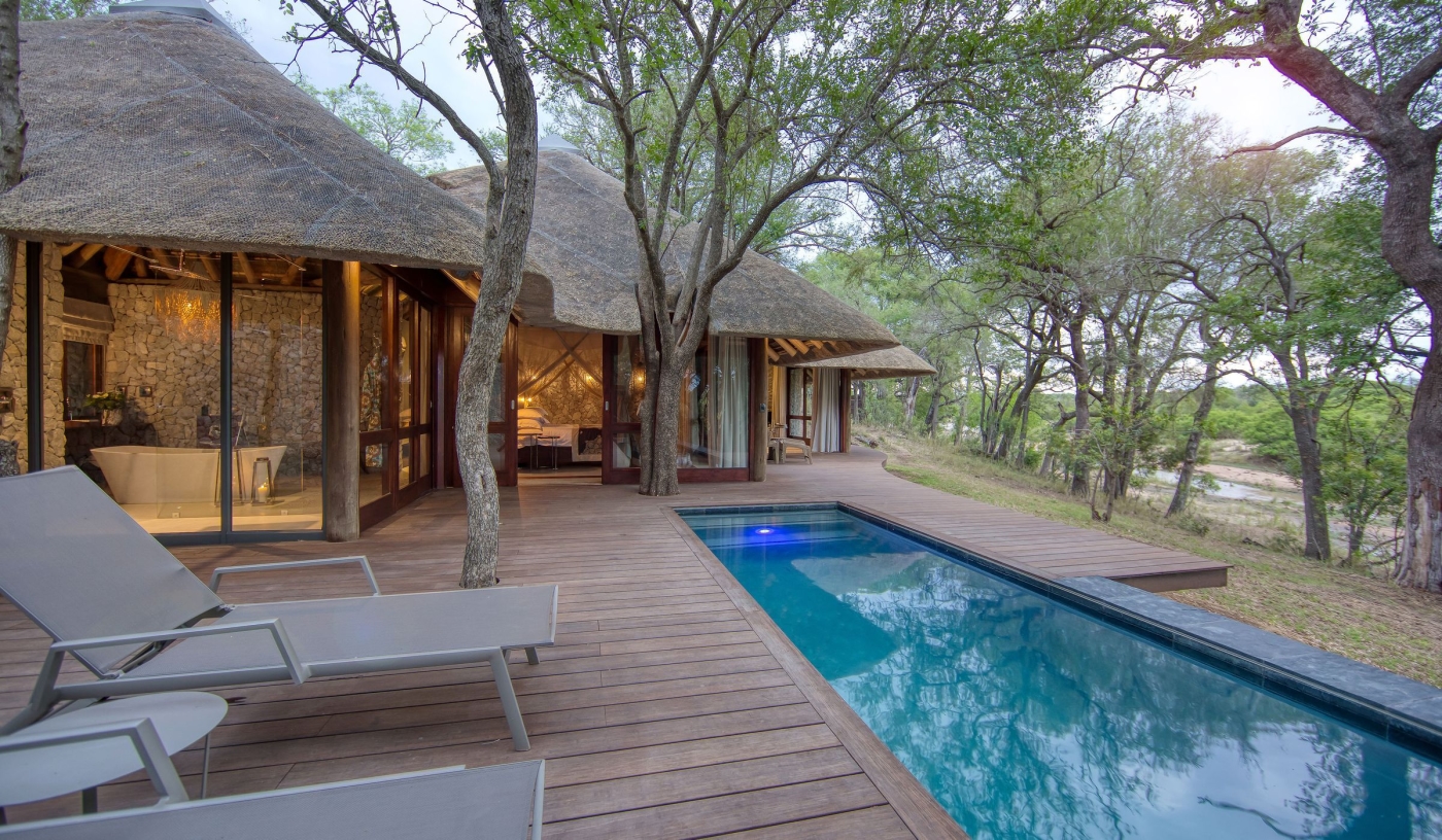 An ultra-luxe lodge on an elevated hillside overlooking the N'wanetsi River in a wild and remote concession within Kruger National Park.