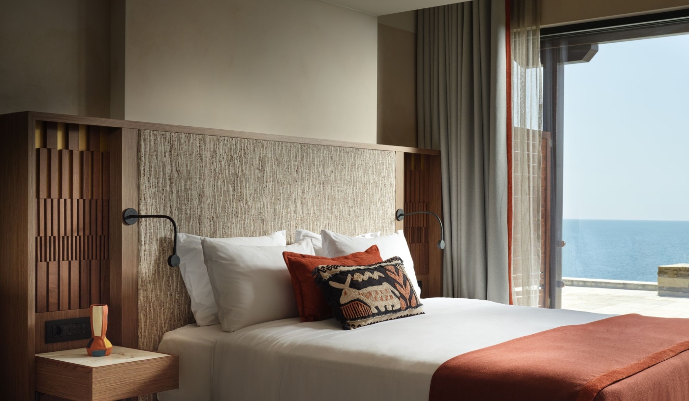 Modern rooms, suites and bungalows offer options for couples, families or groups, with sea views, large terraces and private pools in select categories.