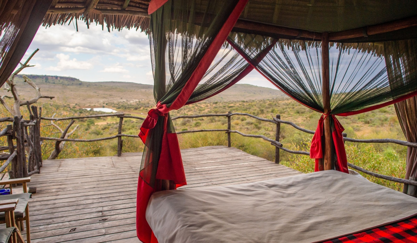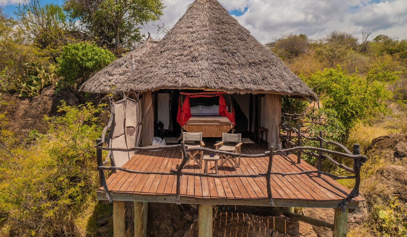 Twelve-room tented camp perched on the edge of an escarpment, with views extending for hundreds of miles across the plains of Laikipia.