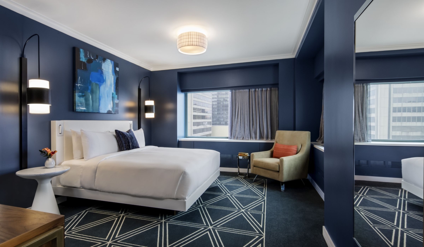 Contemporary guestrooms blend comfort and style, reflecting the elegance of the hotel’s striking modern refurbishment.