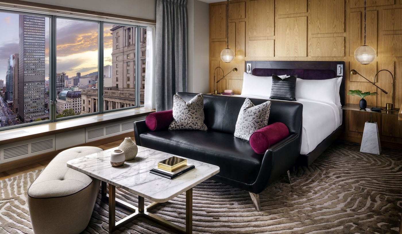 A showpiece staircase links the lobby to Montréal’s Underground City, with miles of boutiques, galleries and dining venues.