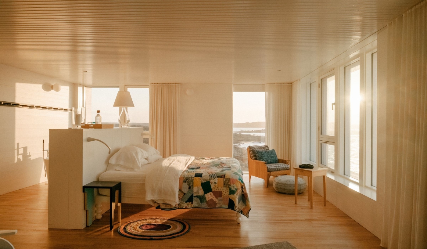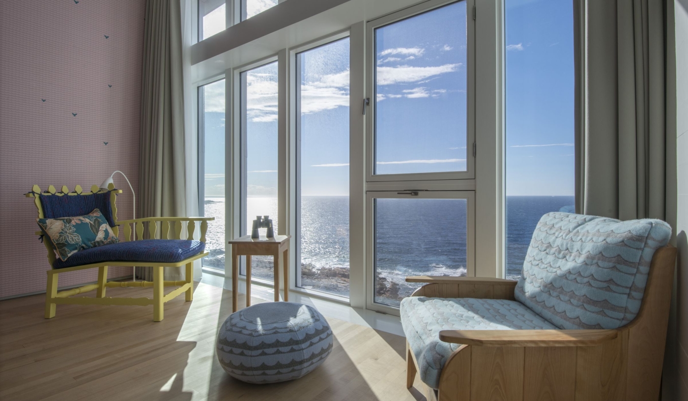 Perched on the edge of the North Atlantic, the striking inn was designed by architect Todd Saunders as a beacon of modern heritage