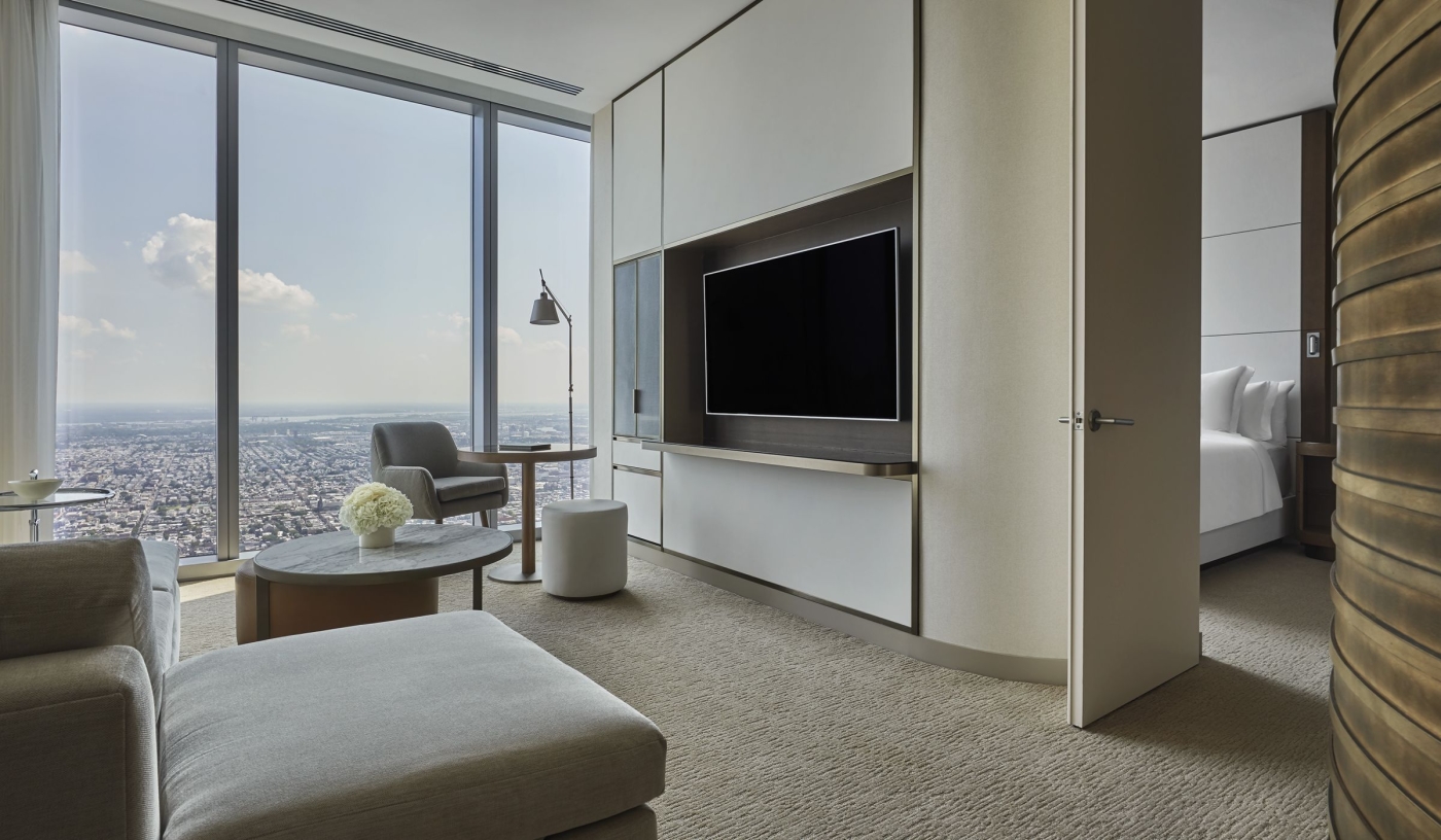 Ten floors of rooms and suites offer wide city views, enhanced by modern touch- and voice-activated systems.
