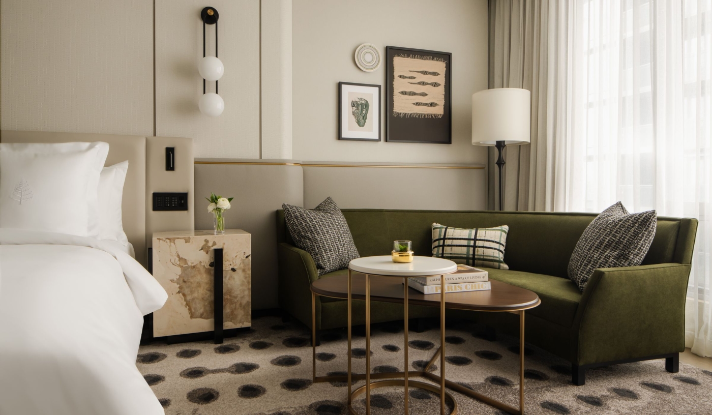 Rooms and suites are crisp and calming, with floor-to-ceiling windows framing views across Toronto’s fashionable neighbourhoods.