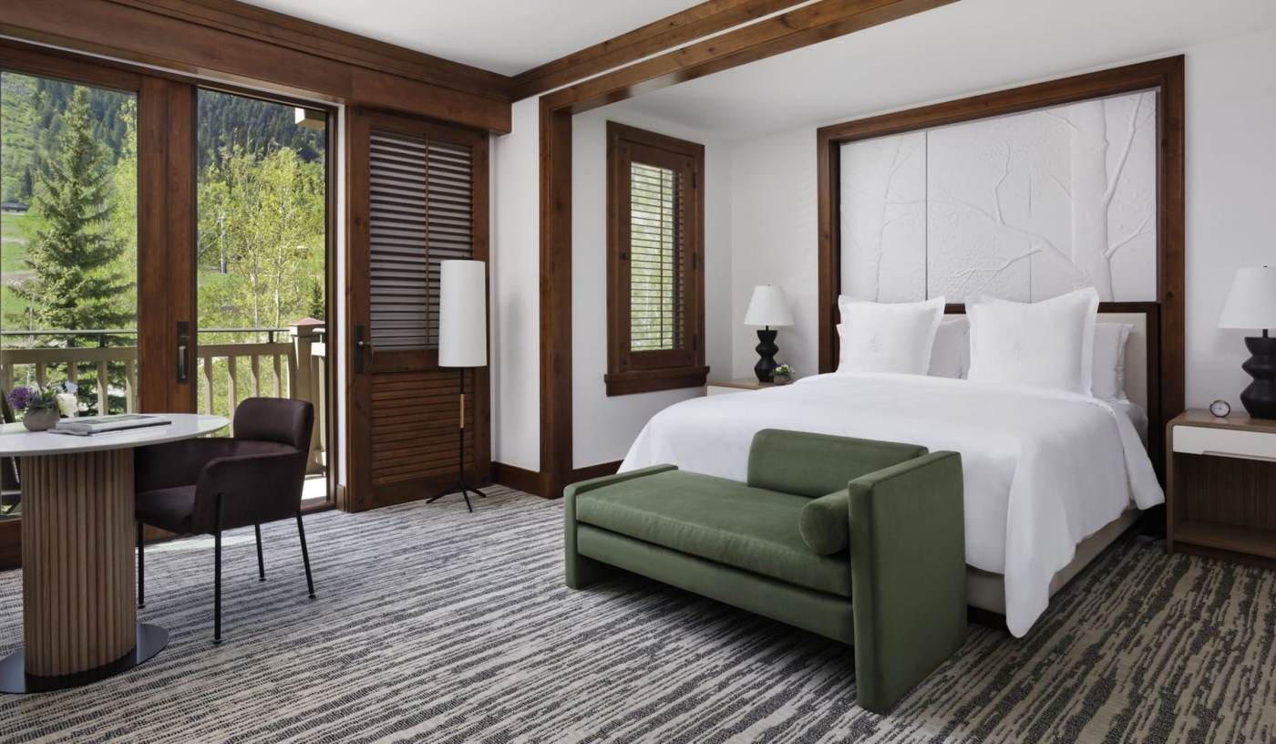 Many rooms and suites open onto private terraces, offering quiet views of forested slopes and open sky