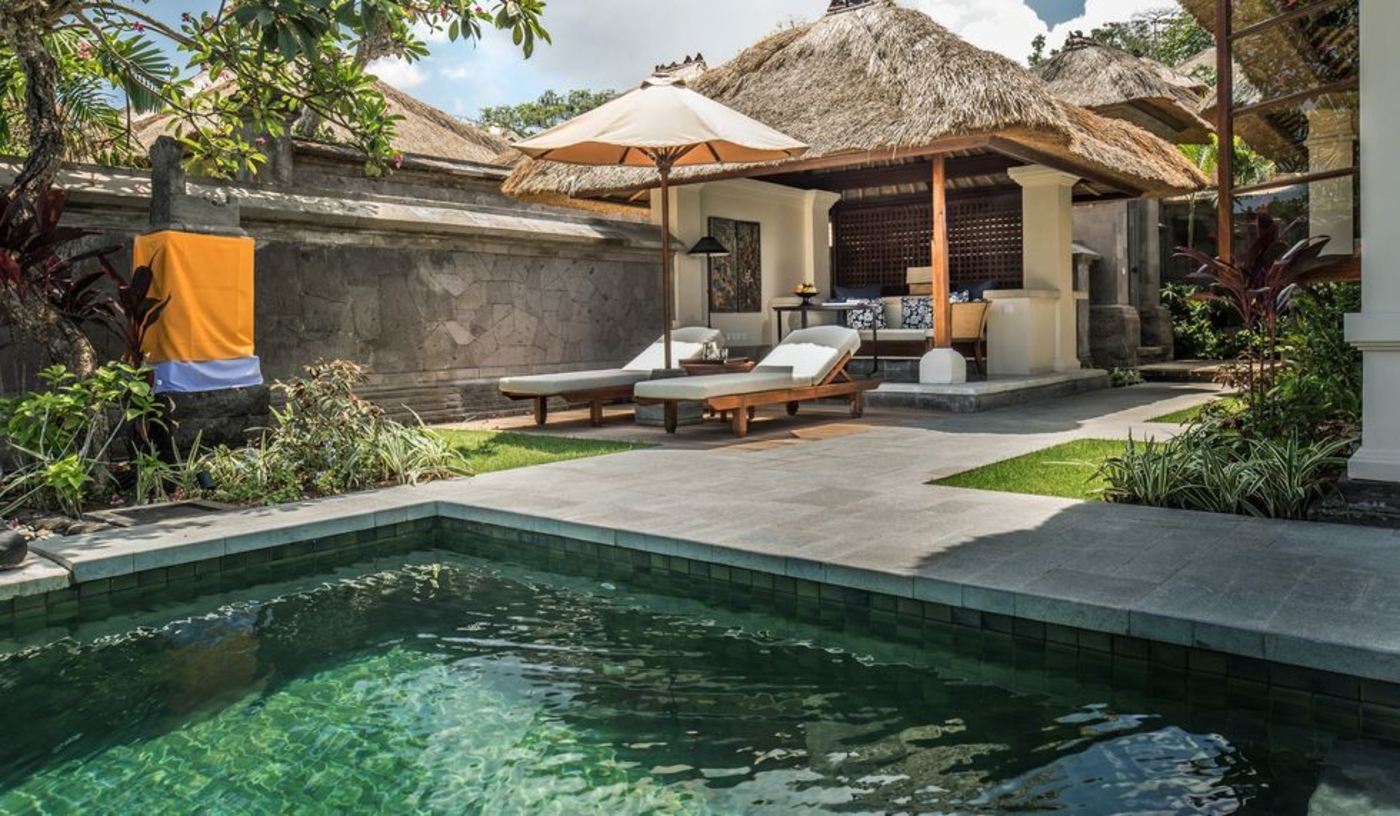 This luxury resort features traditional Balinese design with thatched-roof villas, stone pathways and serene lily ponds. It is just a short stroll from Seminyak’s restaurants and beach clubs, yet offers plenty to enjoy on-site, from tranquil pools and curated cultural experiences.