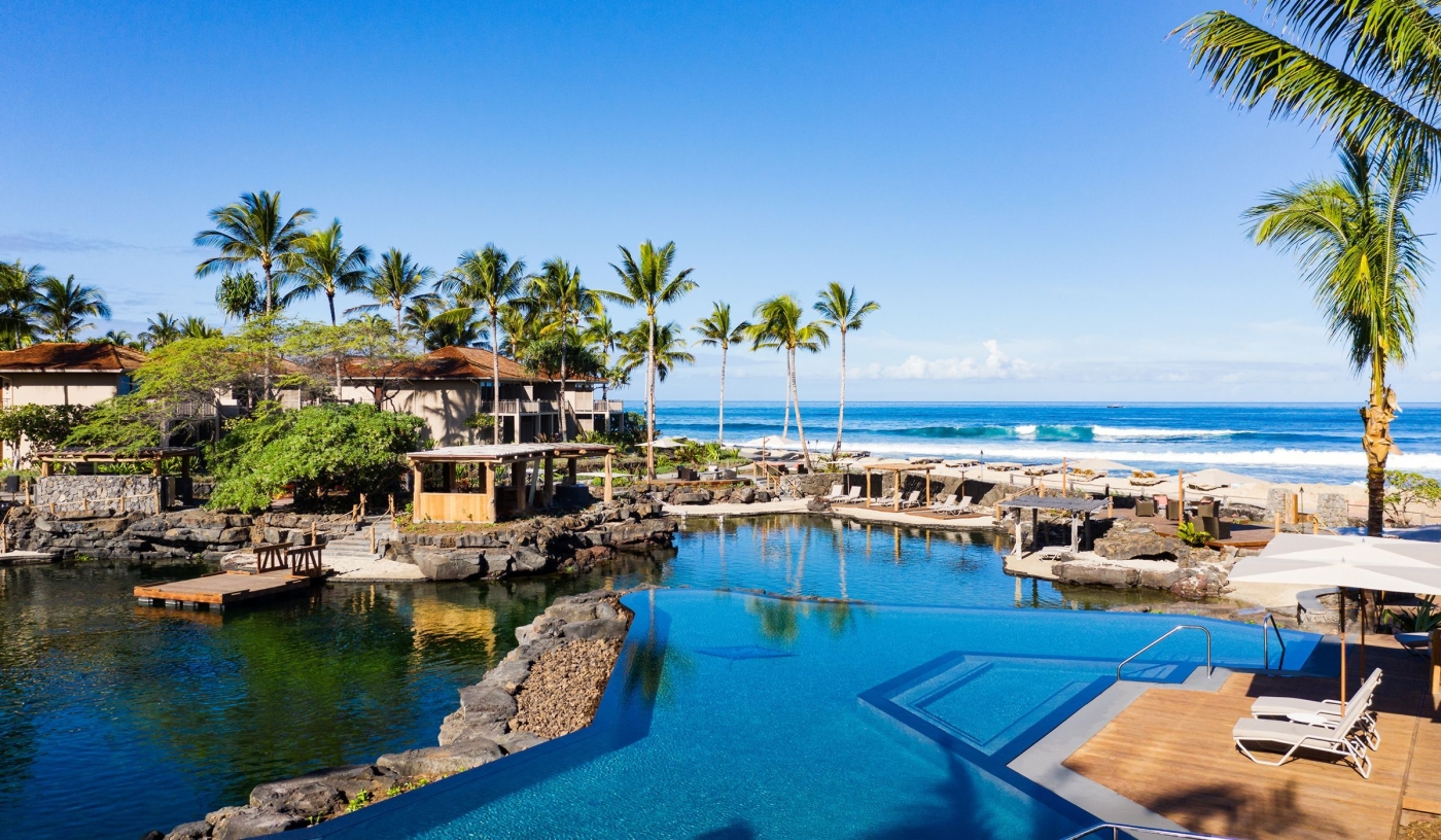 Set on the Kona-Kohala coast of Hawai‘i Island, the resort has direct access to calm, swimmable waters
