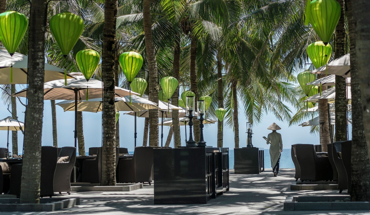 Dining includes Café Nam Hai for breakfast, La Sen for Vietnamese delicacies, and a stylish Beach Bar for sunset drinks