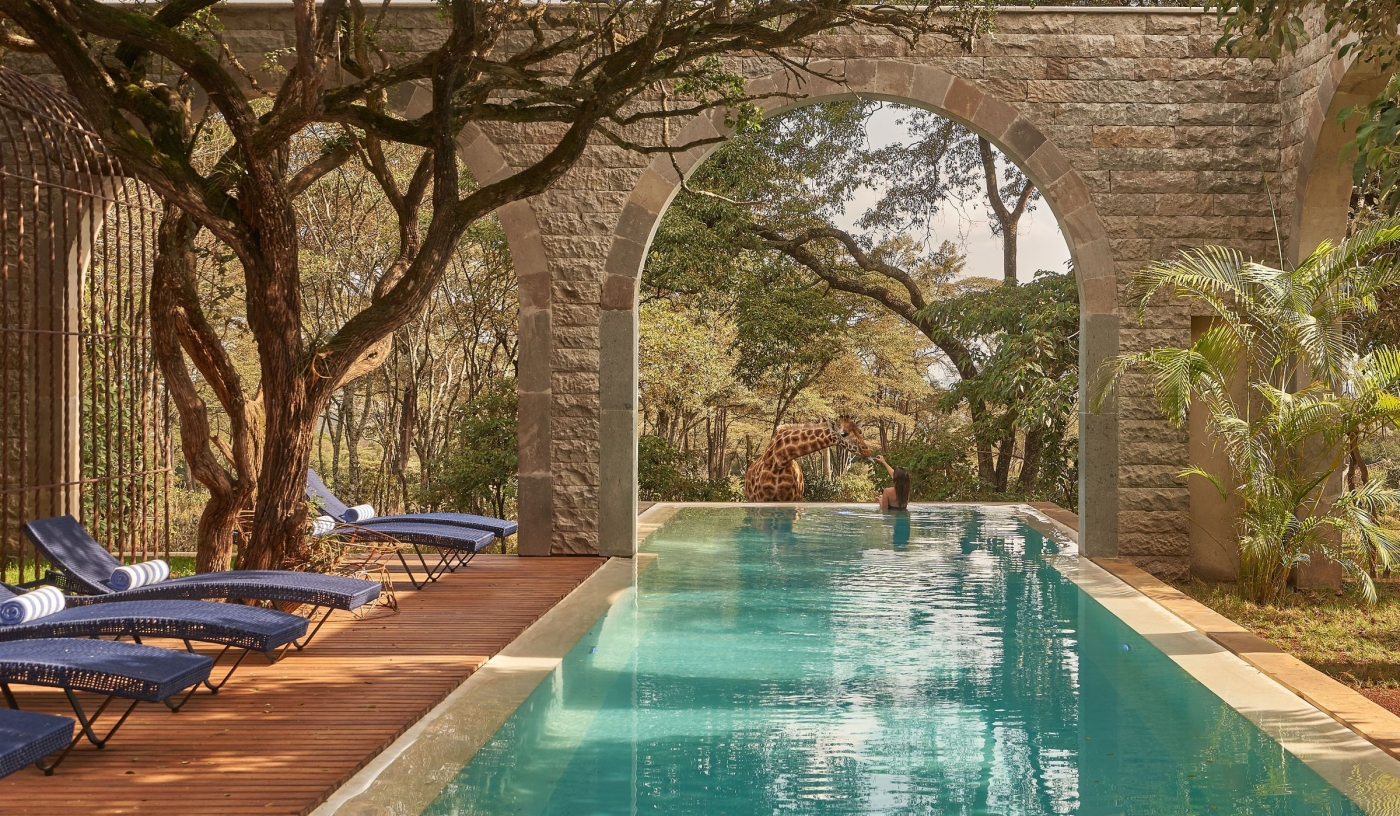 An exclusive boutique hotel surrounded by 12 acres of private land in the leafy suburbs of Nairobi, where guests can interact with a friendly herd of Rothschild giraffes.