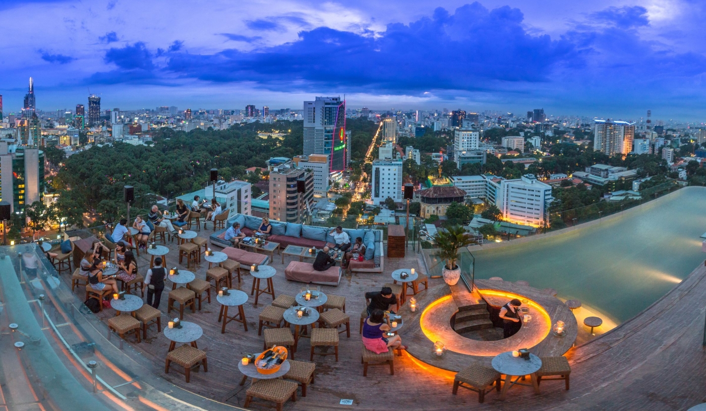 Enjoy Asian street-food-inspired dishes, light lunches or cocktails at the rooftop Social Club with its panoramic city views