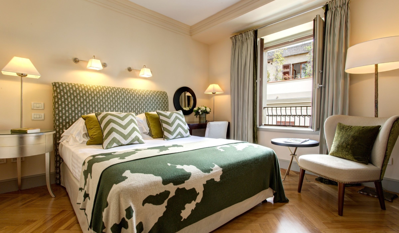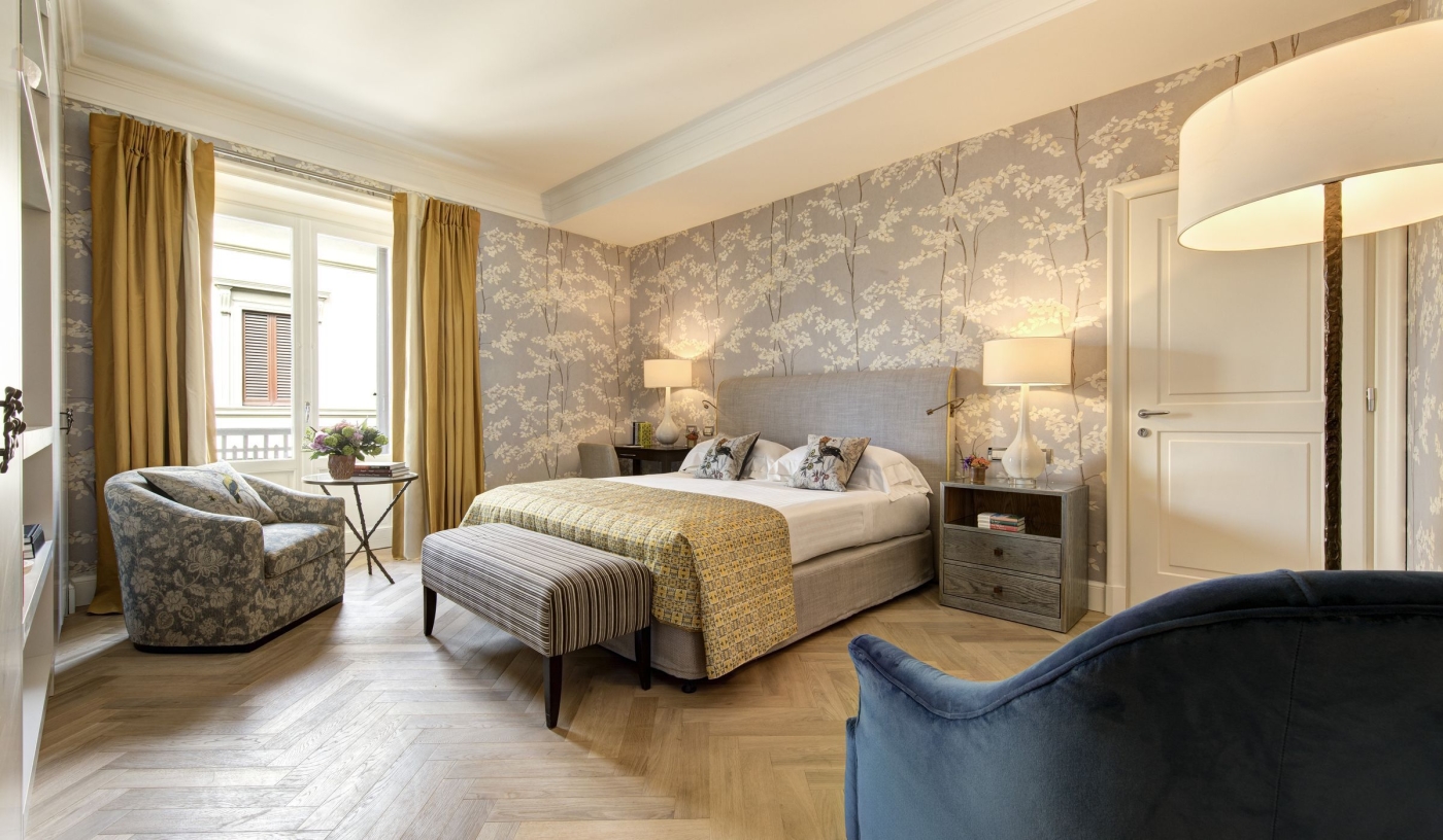 Stylish rooms pair contemporary design with Tuscan charm, featuring bleached oak floors, bespoke furniture and serene city views.