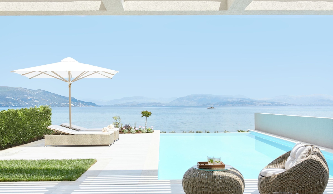 Set on an idyllic, lush green hilltop overlooking picturesque Benitses Bay, with seemingly endless sea views, it’s hard not to be impressed by the elevated style and contemporary heights of this lavish spa and beach resort.