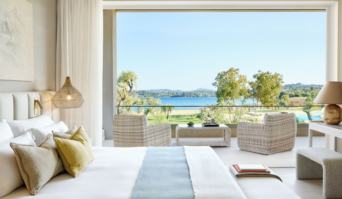 Set on an idyllic, lush green hilltop overlooking picturesque Benitses Bay, with seemingly endless sea views, it’s hard not to be impressed by the elevated style and contemporary heights of this lavish spa and beach resort.