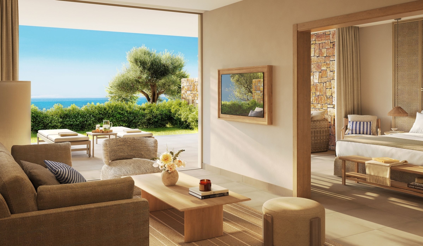 A wide range of family activities includes tennis, kayaking, football pitch, yoga and a complimentary electric MINI Countryman for day trips across Halkidiki’s coast.