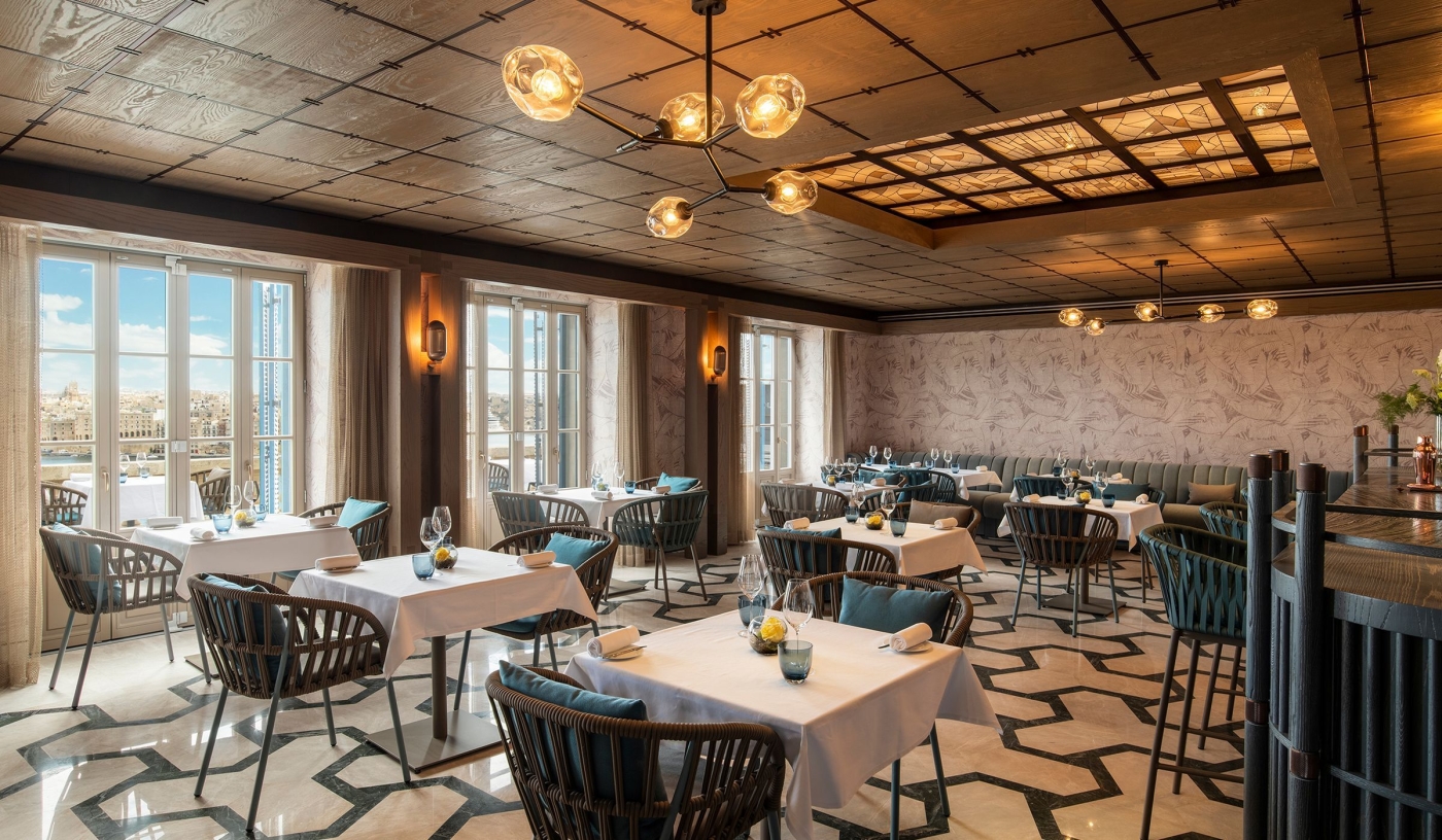 Michelin-starred ION The Harbour delivers fine dining with panoramic rooftop views of Valletta’s Grand Harbour and the Three Cities.