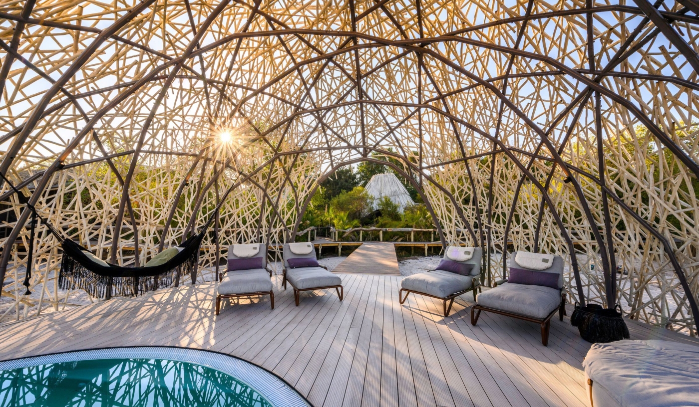 Contemporary camp with individually designed villas and suites, all with private plunge pools