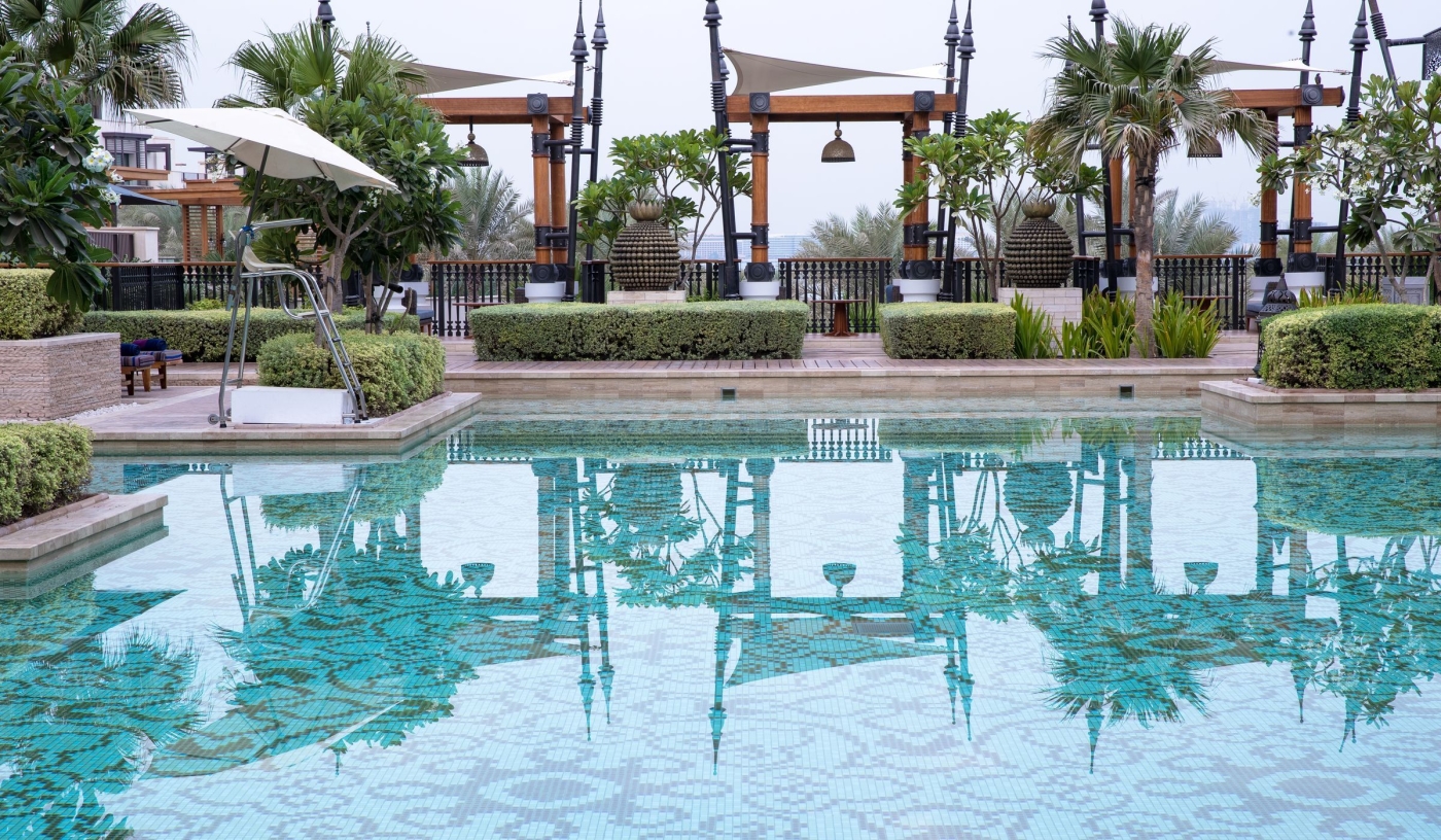 The setting balances calm and access, lounging by the pool one hour, browsing the souk or dining by abra the next.
