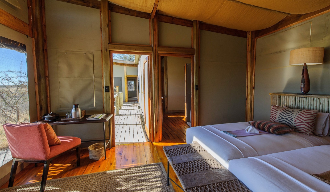 Lying on the edge of an enormous pan, Kalahari Plains Camp is an eco-friendly camp offering excellent game viewing through the green summer months of December to March.