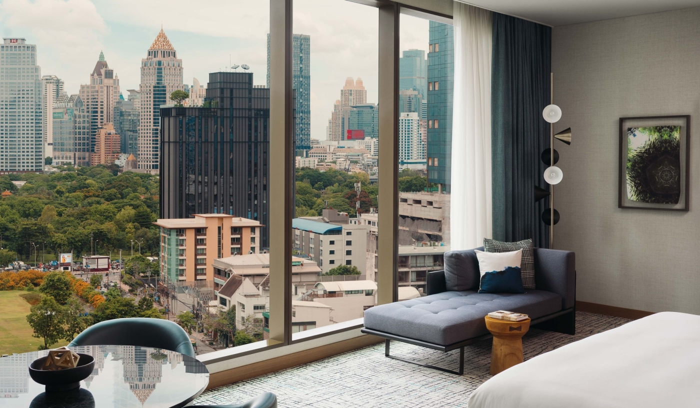 Set in one of Bangkok’s most stylish neighbourhoods, between the greenery of Sindhorn Village and Lumpini Park and the sleek One Bangkok district, Kimpton Maa-Lai draws both travellers and in-the-know locals. Rooms blend Thai comfort with clean modern design and skyline views, while six dining spots, a rooftop bar, spa and infinity pool seal its urban appeal.