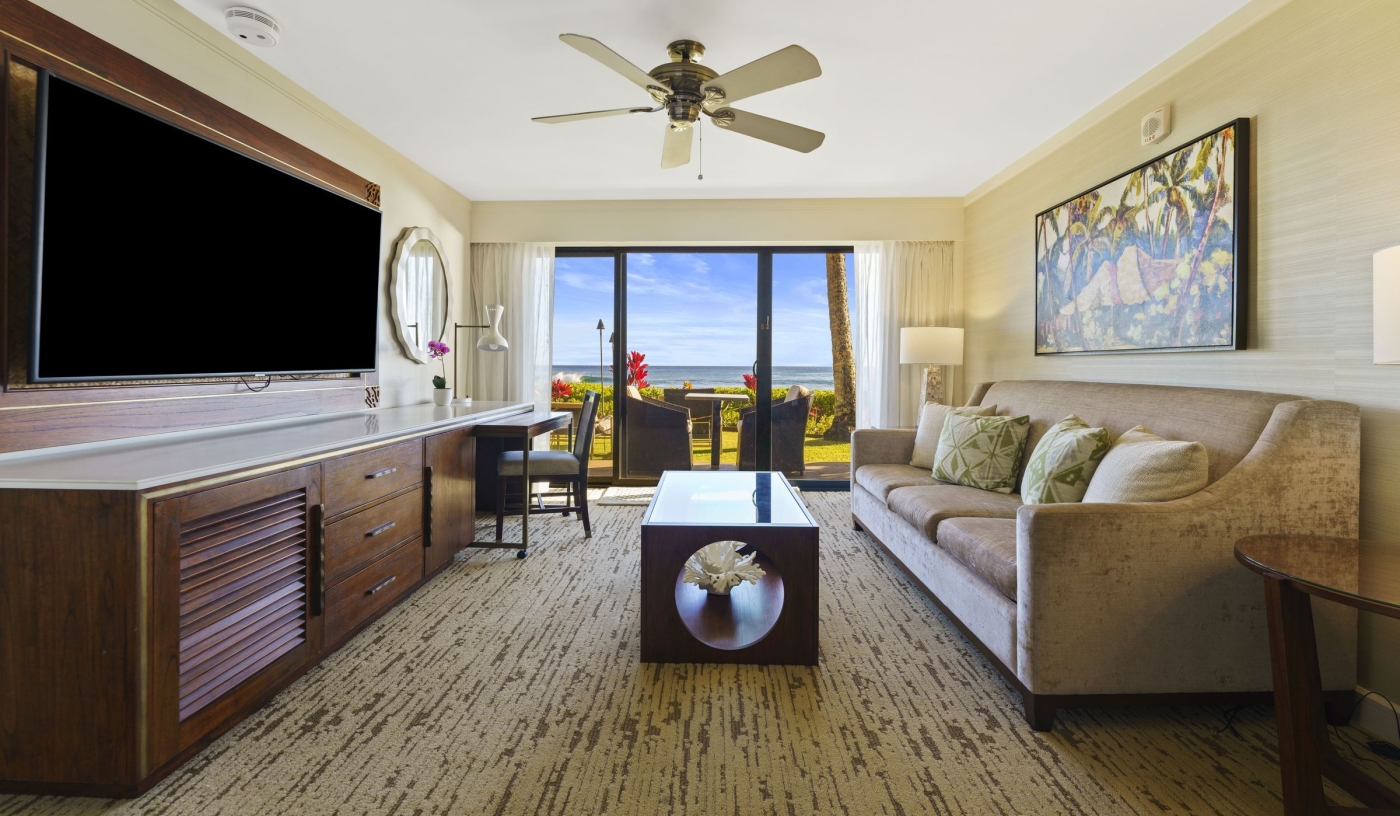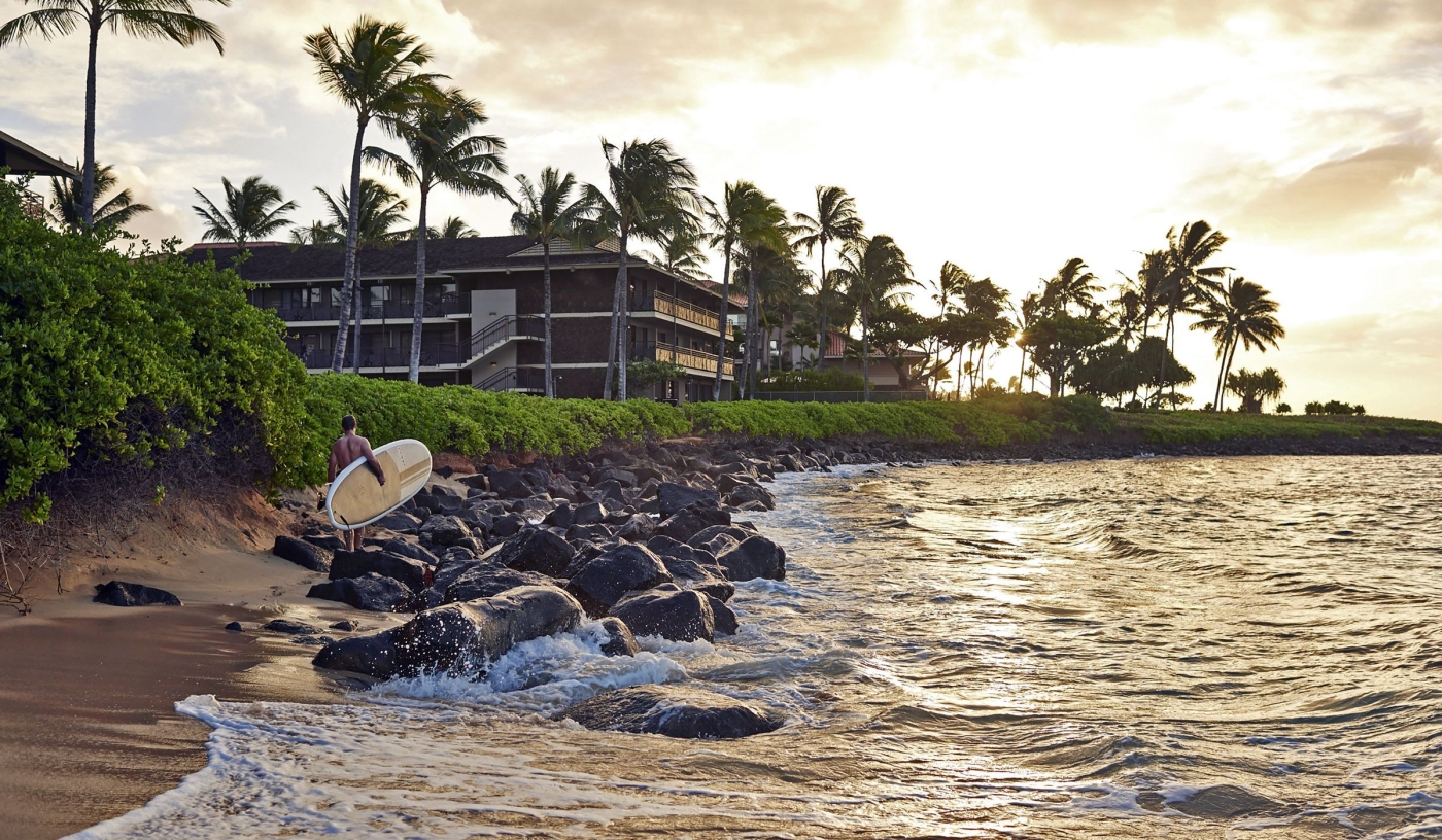Located on Po‘ipū Beach, the hotel sits close to one of the island’s most swimmable stretches of sand.